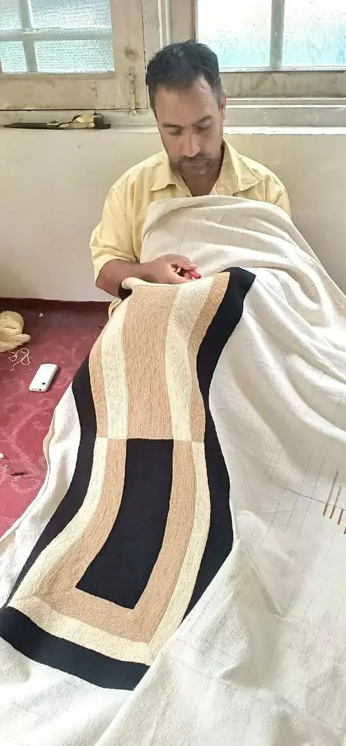 This geometric throw pillow has been ethically hand- embroidered by artisans in Kashmir, India, using a traditional embroidery technique that is native to the Kashmir region. The purchase of this handcrafted pillow helps to support the artisans and preserve their craft. Each piece may vary slightly due to the nature of handcrafted goods.