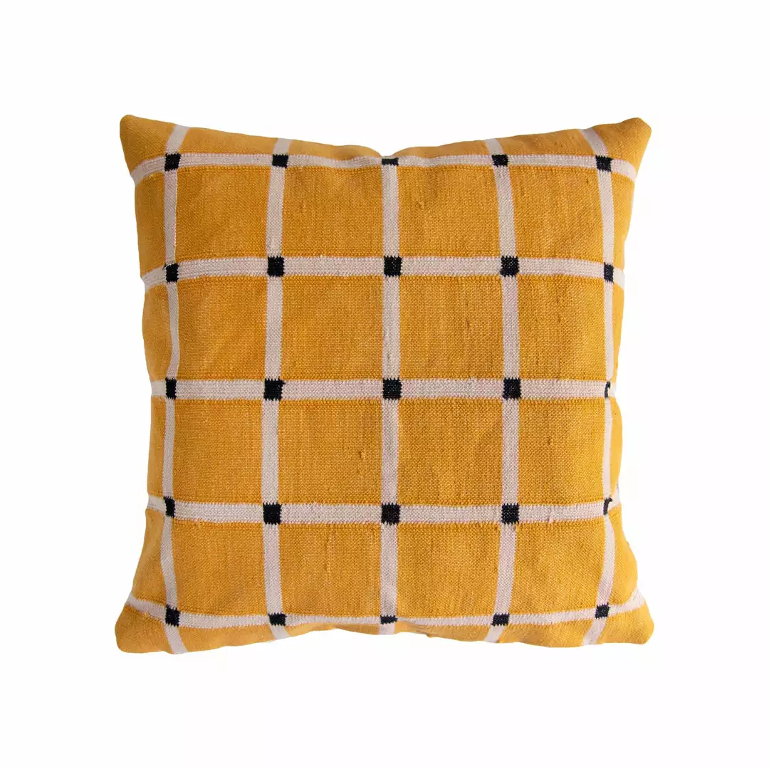 The Grid Reversible Throw Pillow is a modern geometric throw pillow cover that adds a pop of color and energy to your space. This handcrafted pillow is reversible, giving you two styles in one for dynamic home decor. The grid pillows are ethically hand woven by artisans in Rajasthan, India, using a traditional weaving technique which is native to this region. Each piece may vary slightly due to the nature of handcrafted goods.