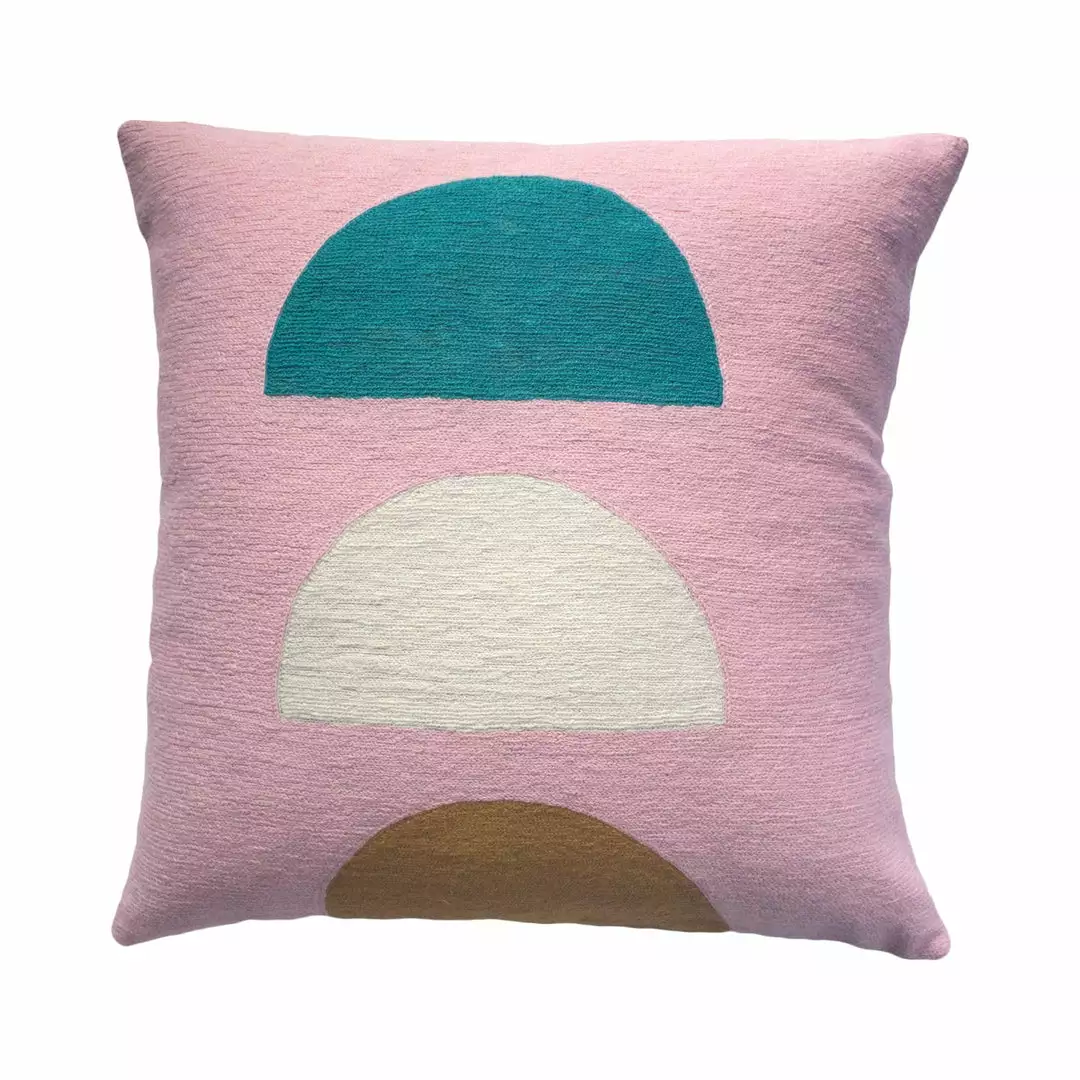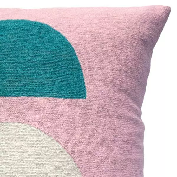 This geometric throw pillow has been ethically hand embroidered by artisans in Kashmir, India, using a traditional embroidery technique which is native to this region. Each piece may vary slightly due to the nature of handcrafted goods.
