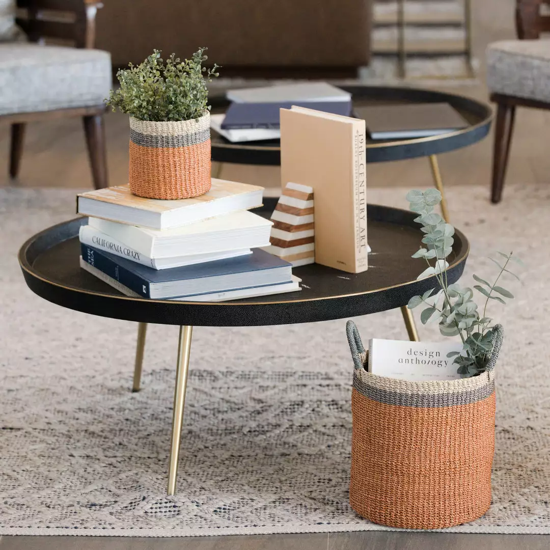 This coral and blue basket is a stylish and functional basket to add a natural touch to any room in your home, whether you use it to store objects or to plant some greens. Each piece is carefully handwoven, variation in color, shape and size is to be expected.