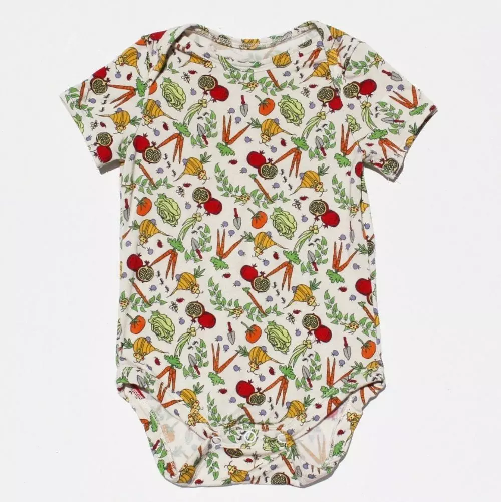 The Essential Bamboo Veggie Onesie is as comfy as it is cute. The breathable bamboo fabric will keep your little one comfortable and stylish. Features a short sleeve, and can be worn layered with pants or on its own.