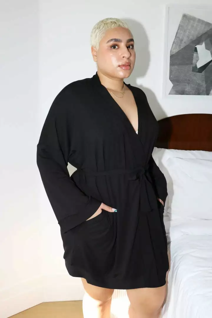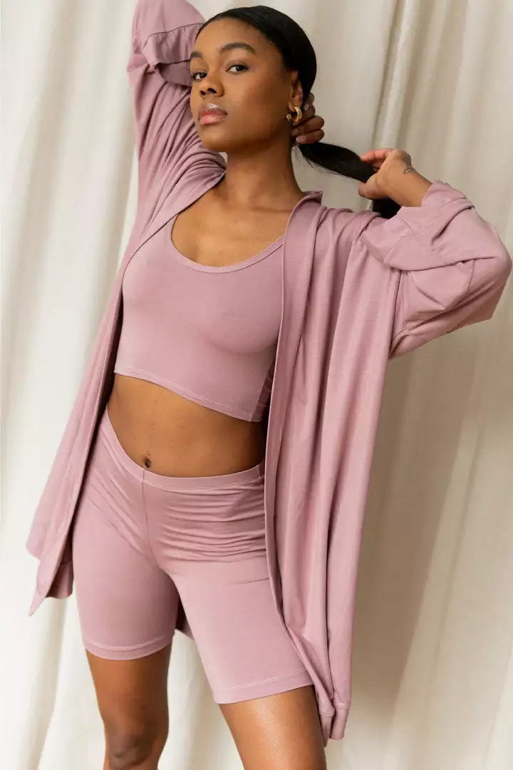 The Oli Robe is the perfect piece to throw on while at home without looking like you’re in the middle of spring cleaning. Hitting mid thigh with raglan loose sleeves, side pockets and a waistband for chic comfort.
