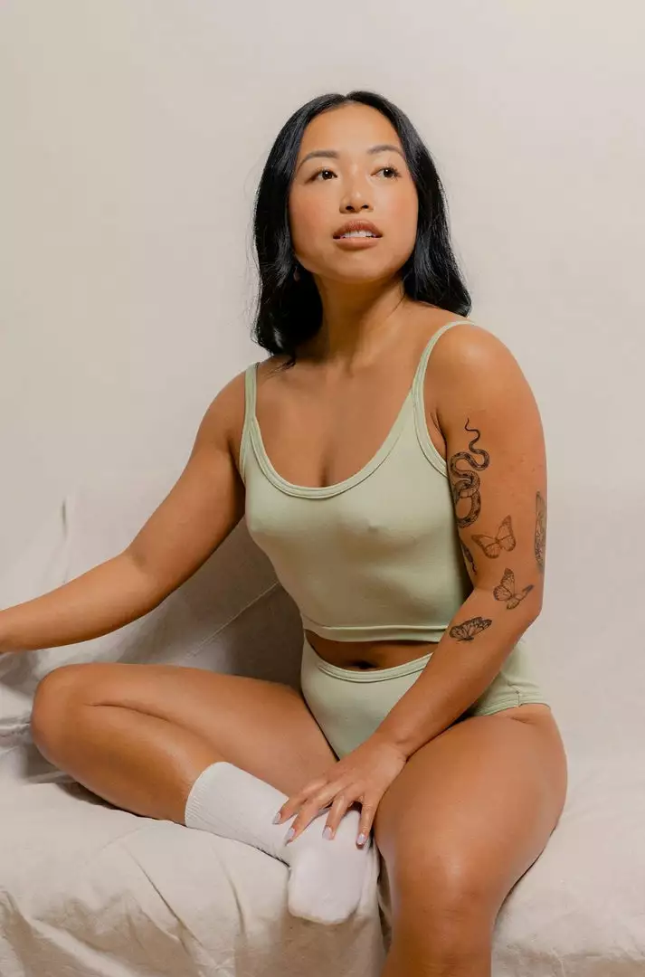 The Bamboo Cainan Tank features a modest front and deep scoop back in super soft bamboo rayon. Wear it layered or on its own when you don’t want to wear a bra but still want a little support.