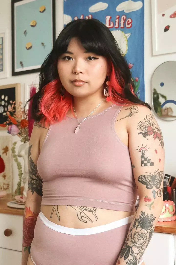 Keren (Pistachio) is 5’3″, a size 4 and wears a Small.