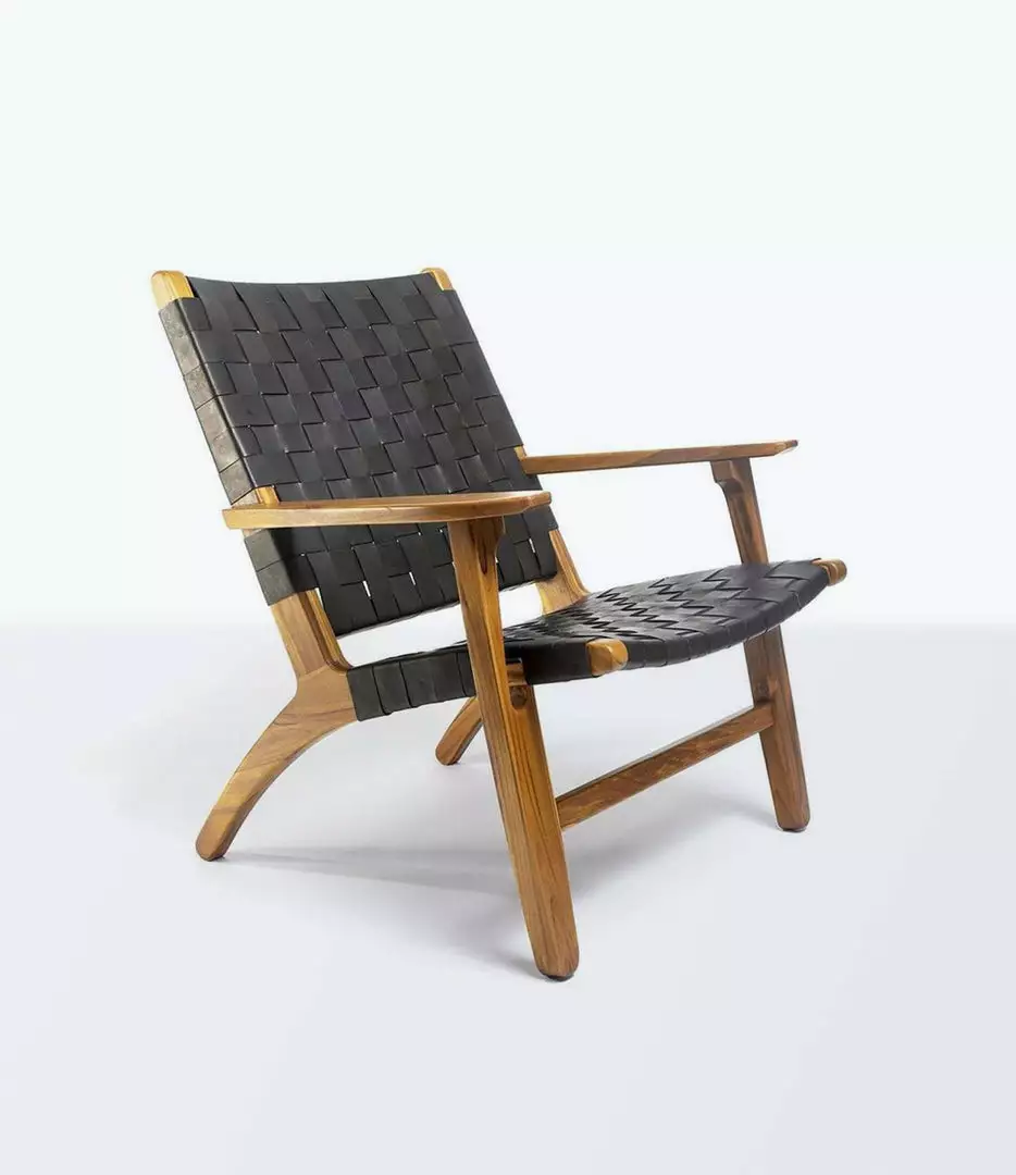 Stylish hardwood and natural leather lounge chair inspired by Danish designs of the mid-century modern period. These chairs make a striking addition to any living area and are a true conversation piece due to their Nicaraguan origin, hand craftsmanship, and authentic sustainability.