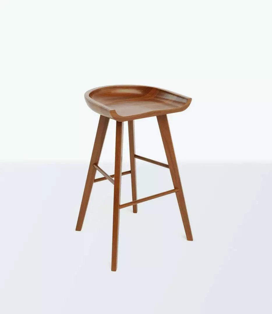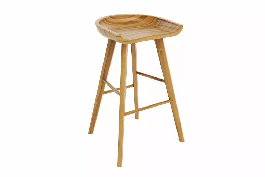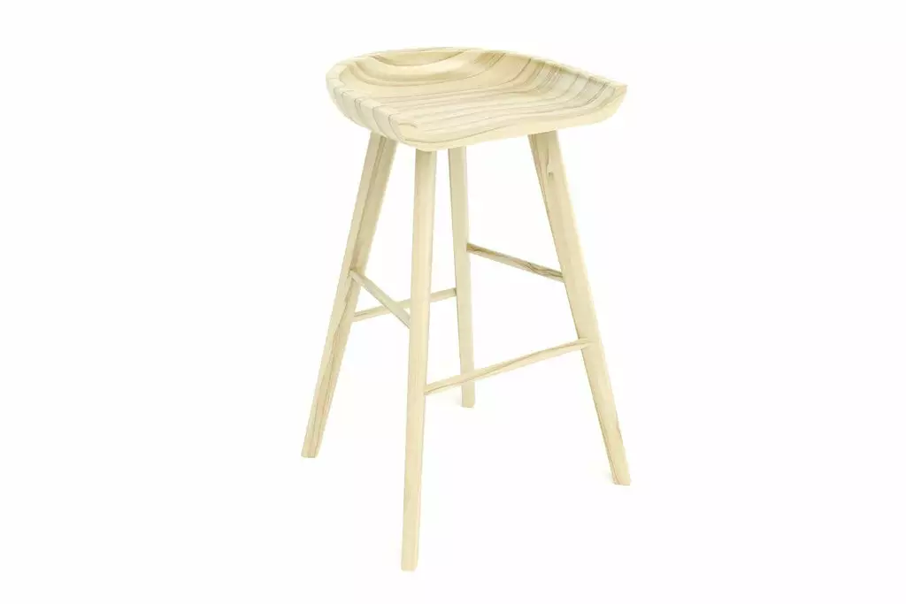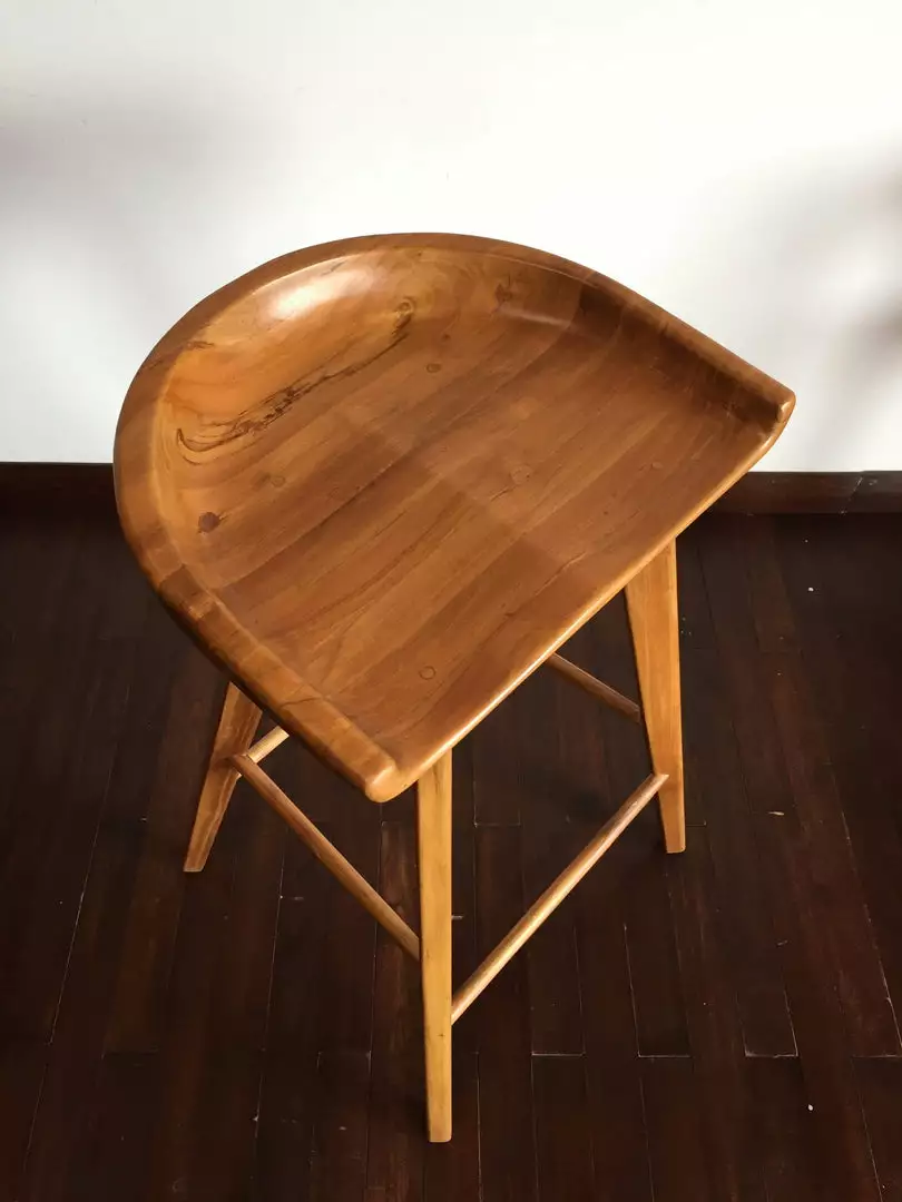 This handmade wooden barstool has a sturdy design and comfortable seating position. The seat and footrest are designed for a comfortable sitting position for hours of enjoyable bar time.