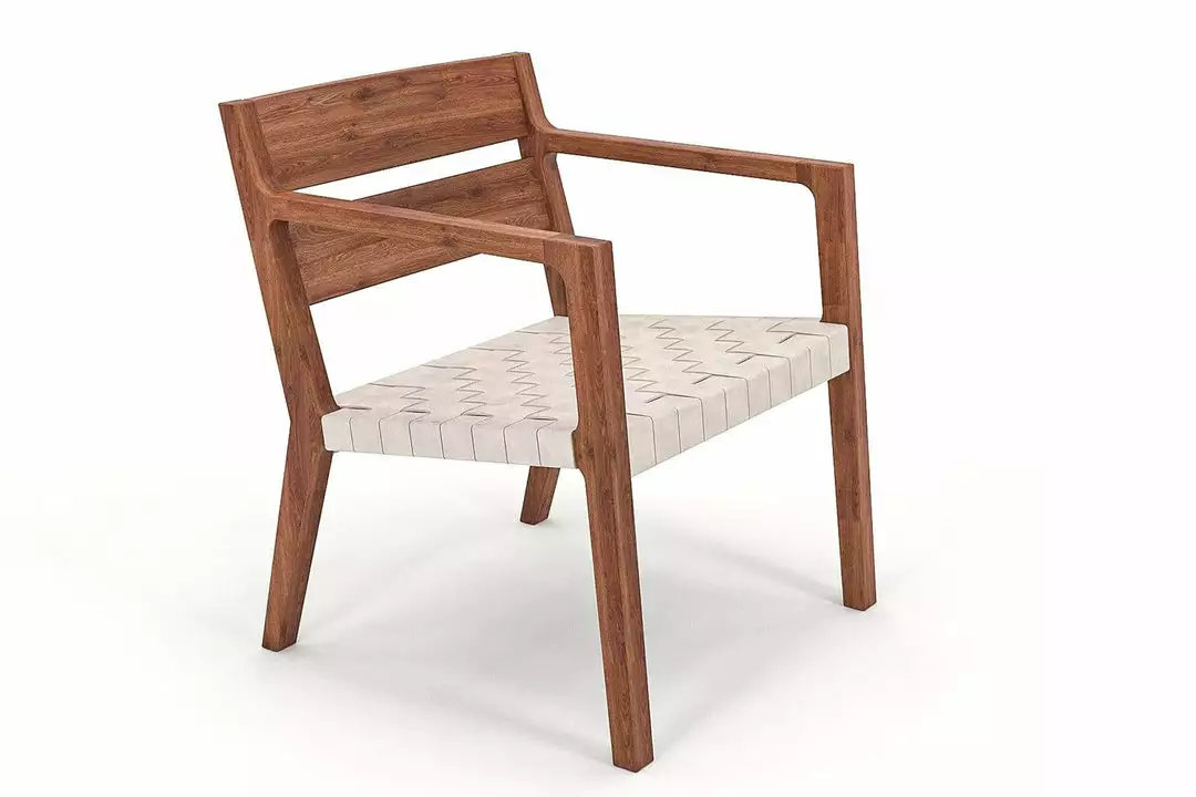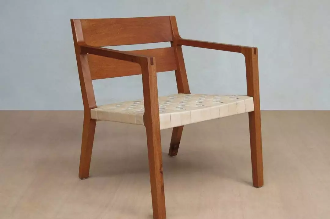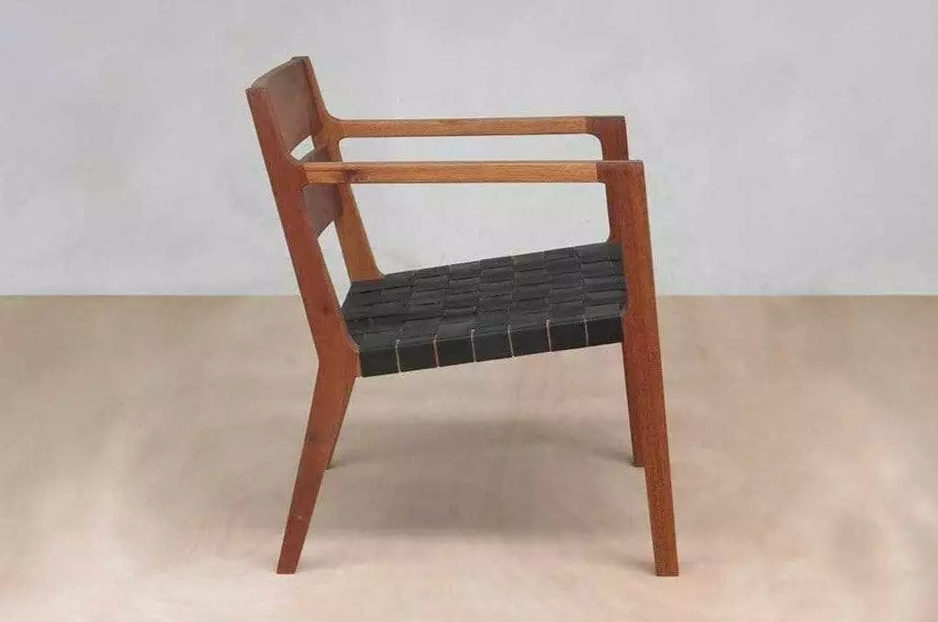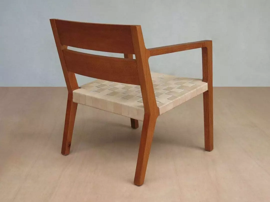 Solid wood-framed Managua Arm Chair. A gorgeously unique living room chair featuring a stylish mid-century modern design built by hand out of Masaya & Co. premium tropical hardwood before their artisans weave the seat with leather that is cut, dyed, and wrapped by hand.