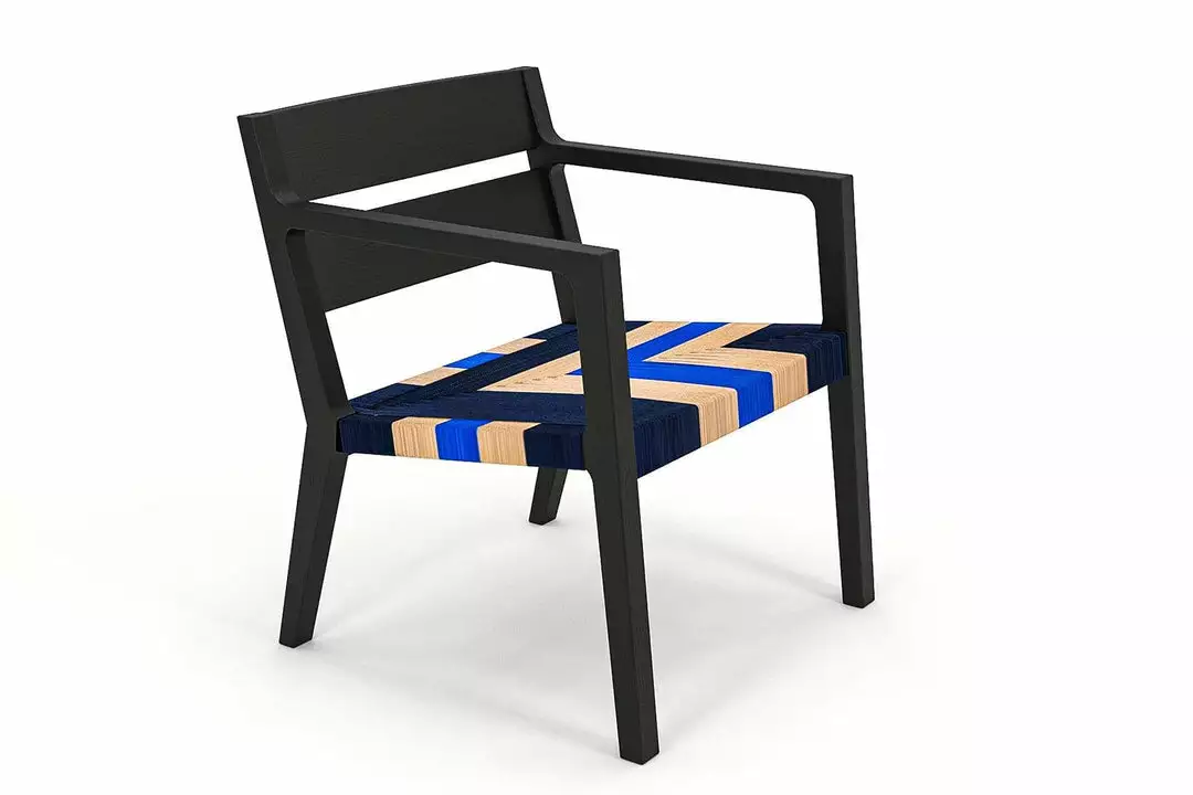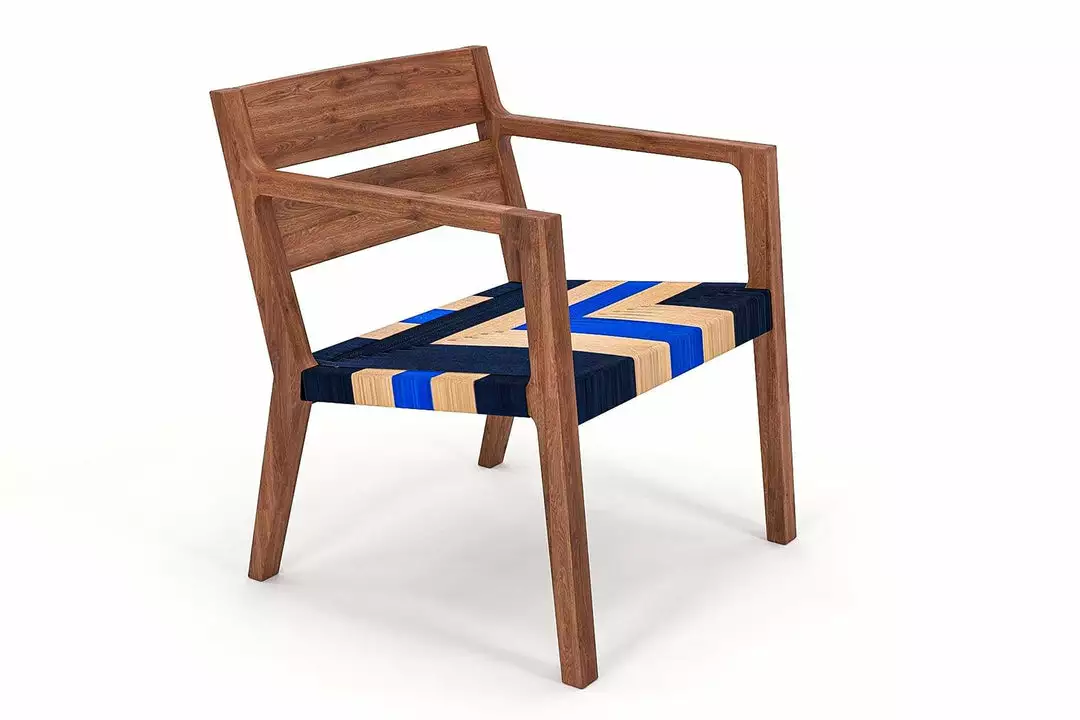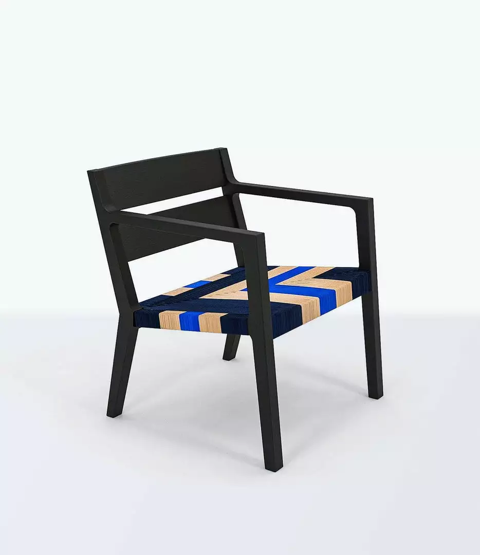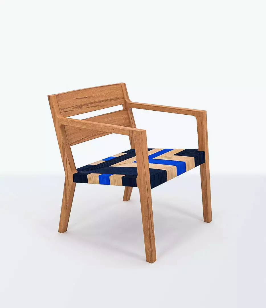 Managua Arm Chair in the Patria pattern features a handwoven manila seat and a solid hardwood frame and backrest. Artisanal woodworking technique and modern styling make this armchair versatile. Available in Teak, Mahogany, Walnut and Burnt Teak.