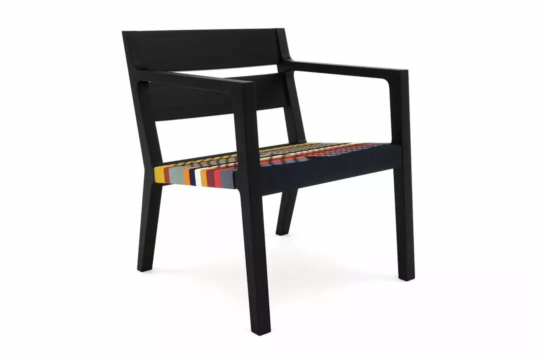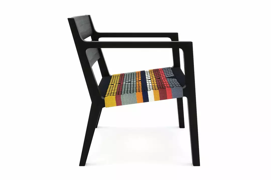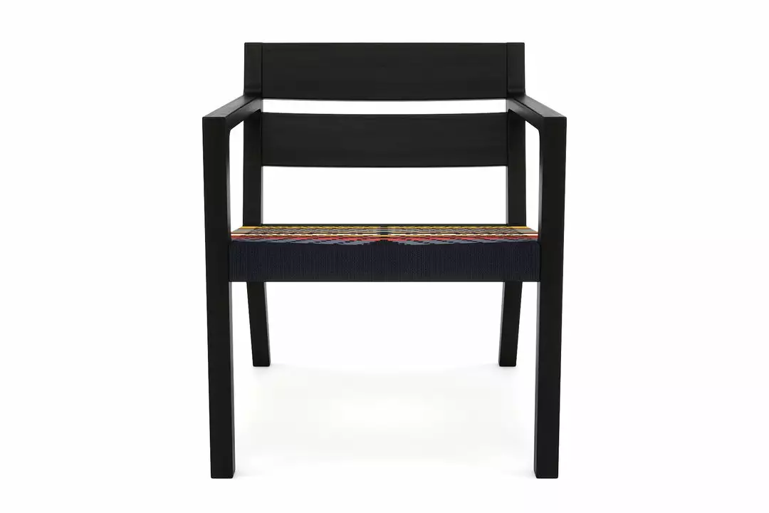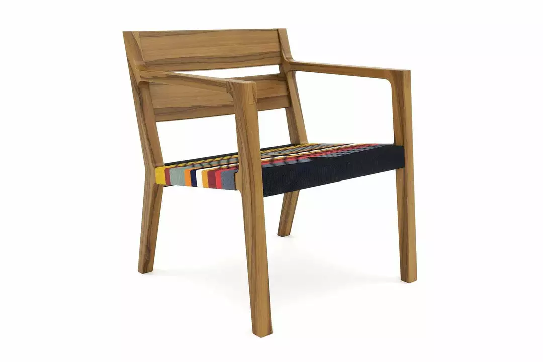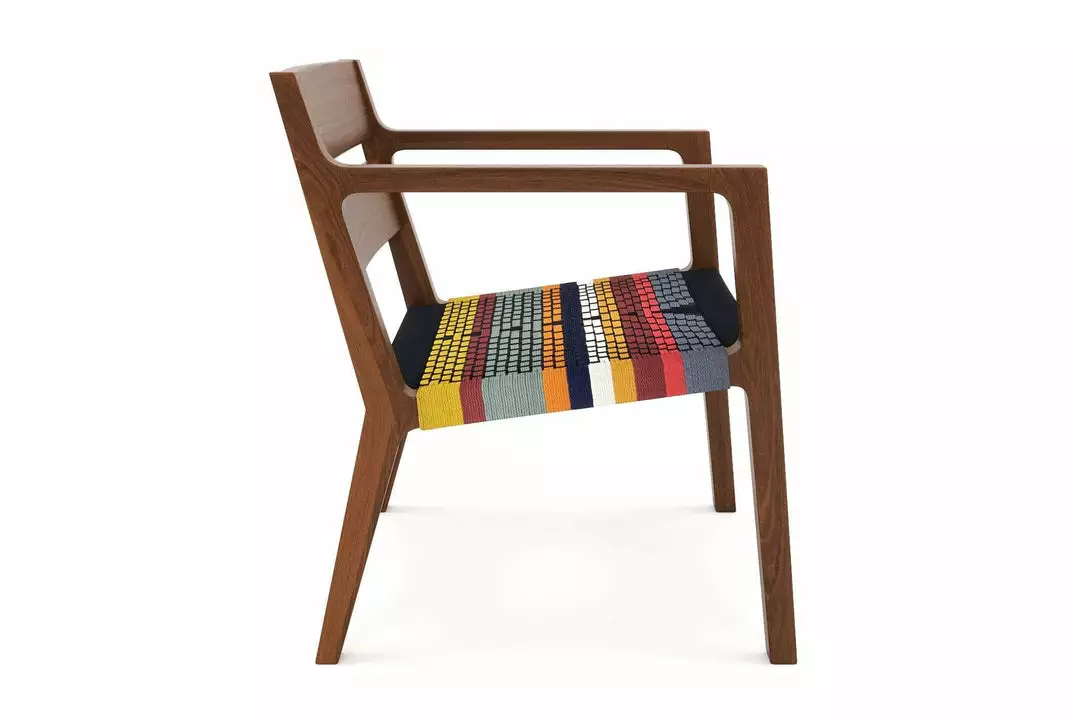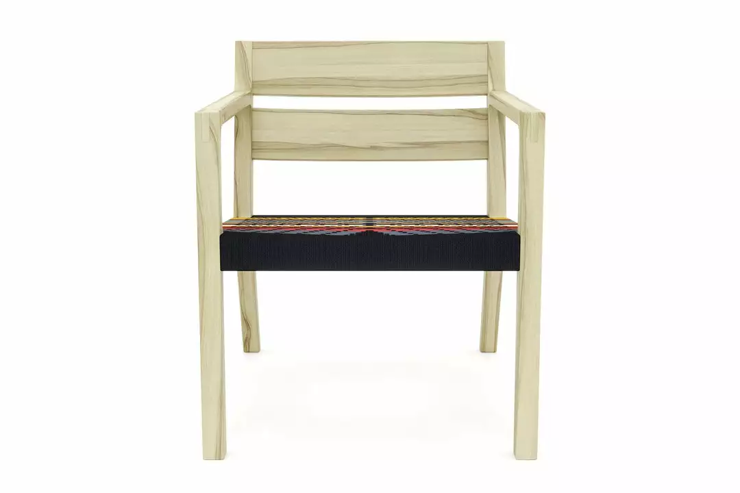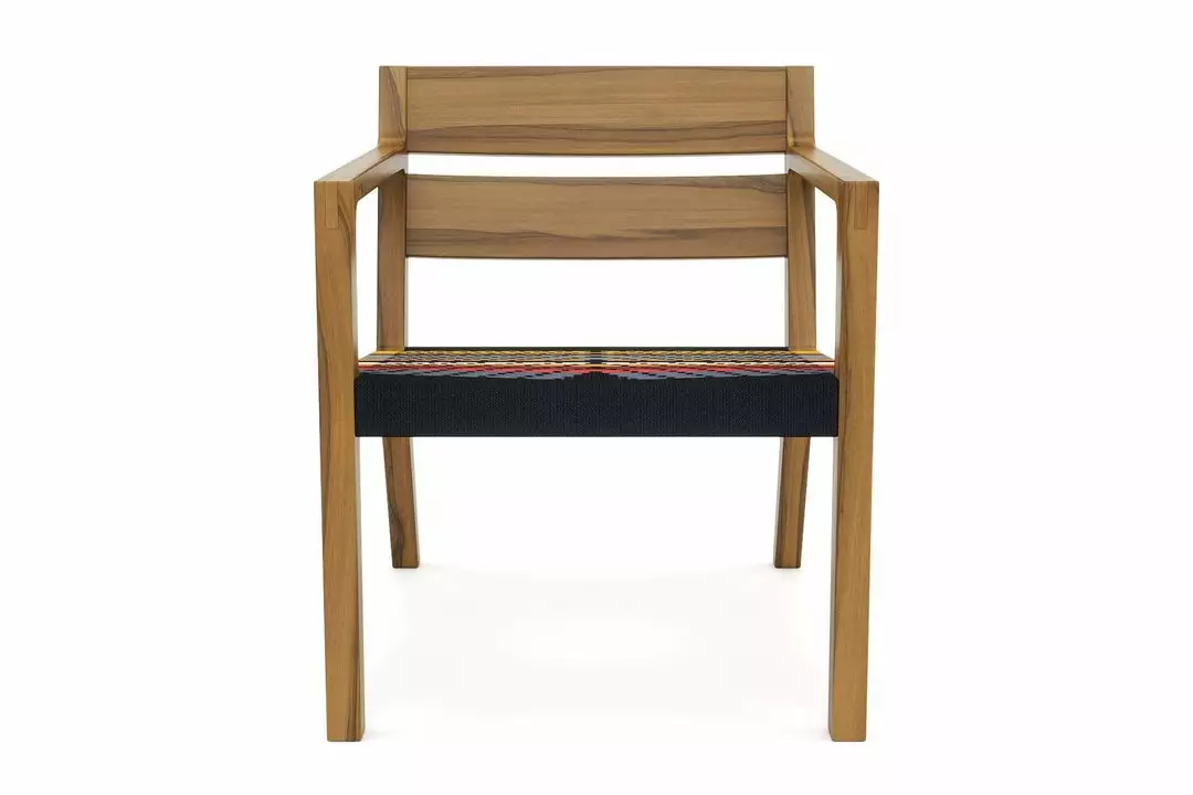 Managua Arm Chair in the San Geronimo pattern features a handwoven manila seat and a solid hardwood frame and backrest. Artisanal woodworking technique and modern styling make this armchair versatile. Available in Teak, Mahogany, Walnut and Burnt Teak.