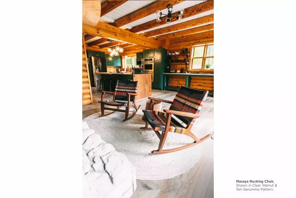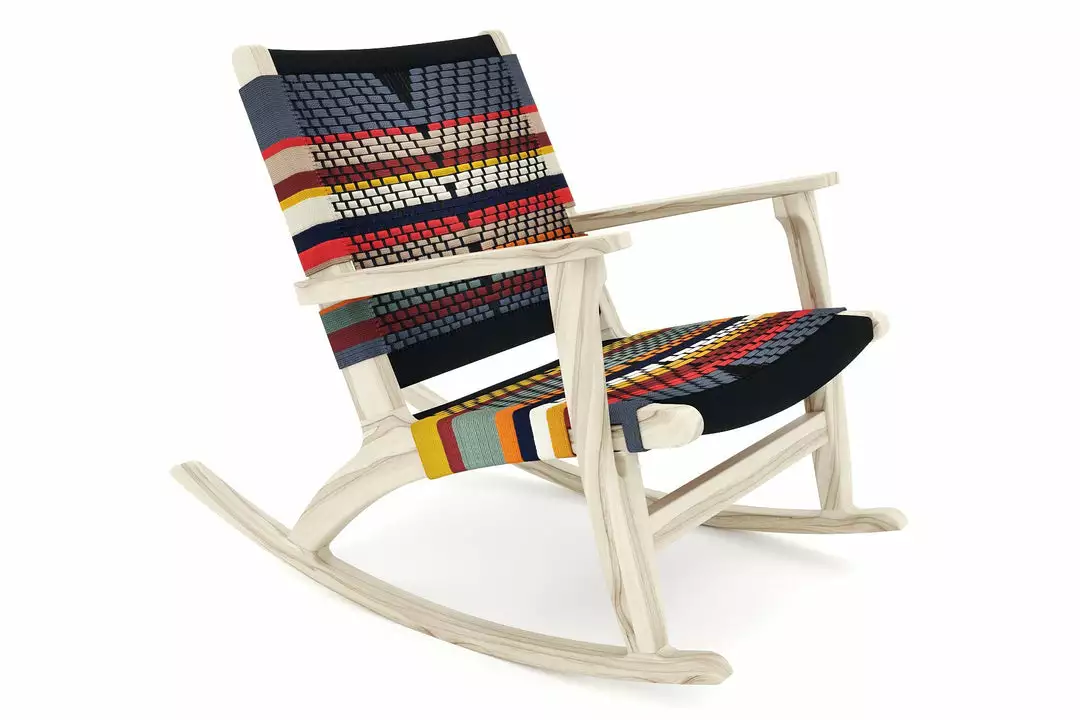 The Masaya Rocking Chair is a mid century modern, solid wood rocker, handcrafted from sustainably sourced wood and handwoven by local artisans. This rocking chair is ideal for indoor spaces, covered porches, favorite reading spots, or as an accent chair adding a pop of color to any area. San Geronimo pattern is inspired by the traditional