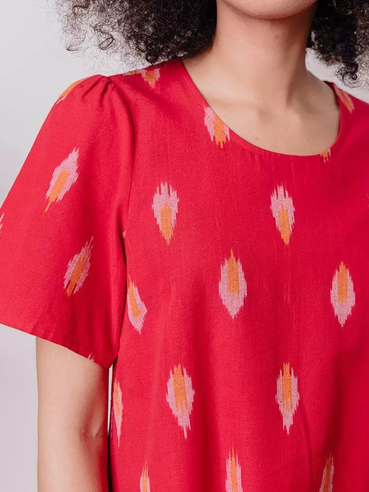 This easy fitting babydoll dress takes casual up a notch with a bold ikat print, keyhole closure, and subtly pleated skirt for a flirty, flowy style. We love it for when you want to make a statement, but stay comfortable.