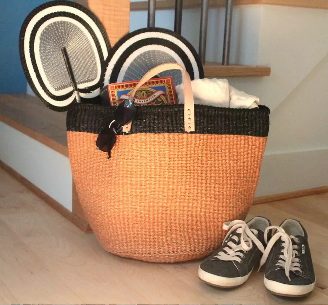 A perfect union of tradition, glorious hand crafted weaving, and super useful storage solution. You can stylishly stash away clutter while supporting talented women artisans with your purchase. These lovely Floor Baskets feature leather handles and are hand woven from sisal by Akamba women in the Machakos region in Kenya. These unique baskets are traditionally given as gifts to brides.