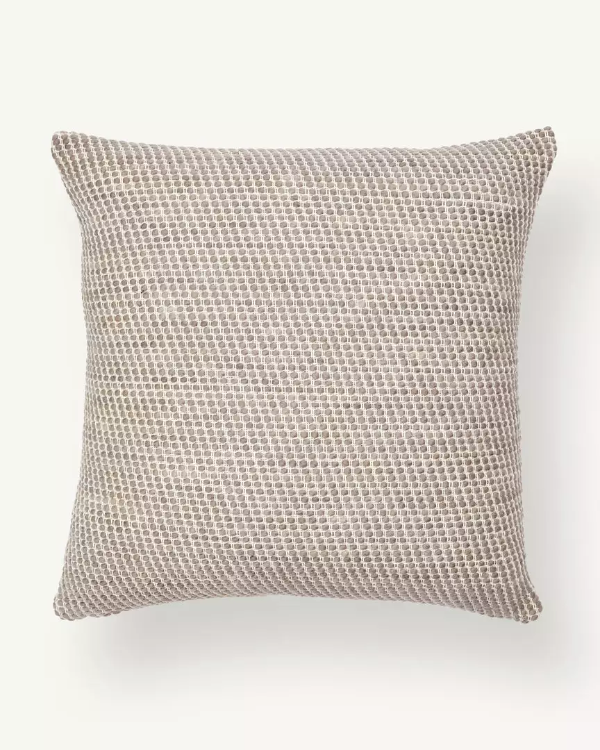 The texture of the Sheila Throw Pillow was inspired by the ruins of Huaca Pucllana and was named after Sheila Hicks. An easy way to incorporate texture into any room. The neutral fog color is 100% natural, derived from plants and flowers.