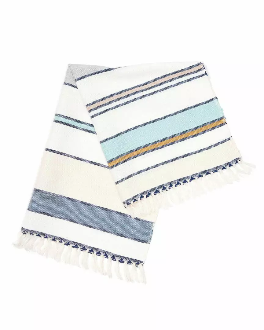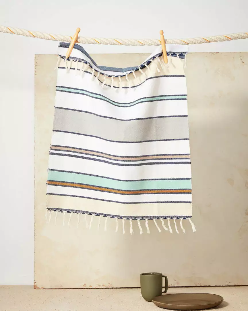 The Lago Stripe towels were inspired by the Guatemalan lake they were woven next to Lake Atitlán. Woven by a man named Manuel in the village of Nahuala, these beautiful striped towels will make a great addition to any kitchen or bathroom. Soft enough to function as hand towels, and durable enough to soak up spills around the kitchen. Finished with a rustic edge and fringe. Due to the nature of handcrafted goods, each towel may differ slightly.