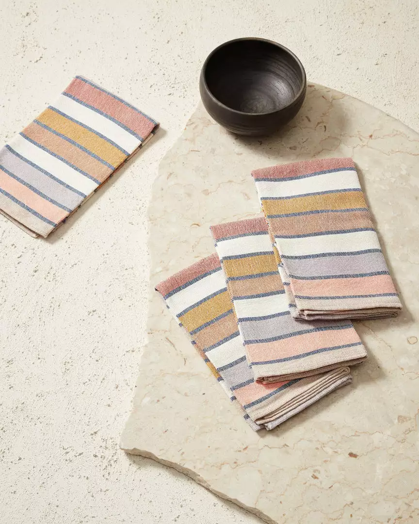 The Sunrise Stripes Napkins will add lively color to your table. A wonderful alternative to paper napkins, you’ll reuse these handwoven cloth napkins for years to come. Each is carefully woven by artisan Manuel in the village of Nahuala, Guatemala. Due to the nature of handcrafted goods, each napkin may differ slightly.