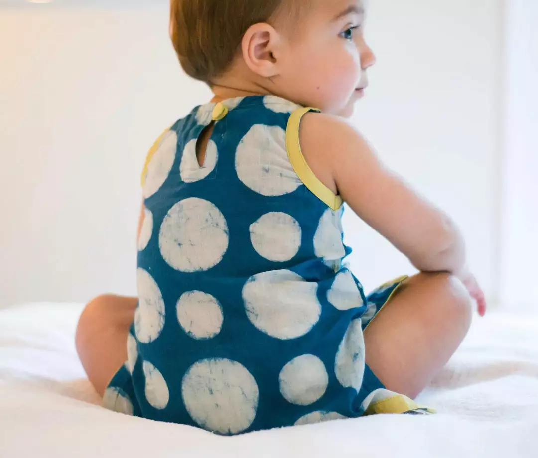 The Dabu dresses are loose fitting & comfortable. Designed to pair with tights, jeans, shorts, our dabu pants or sweatpants. The fabric in the Dabu collection is made with hand carved wooden blocks dipped into a mud paste to create a resist print. The fabric is then dipped into an indigo bath. This process is traditional to Indian textiles.