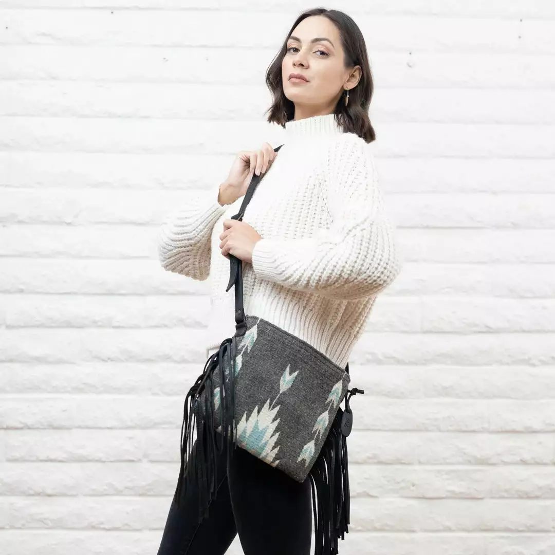 The Smokey Quartz Wool Fringe Bag adds style and movement to your look. A convenient crossbody bag that hits all your must haves, including personality. From festival to farmers market this fringe bag will take you wherever you want to go.