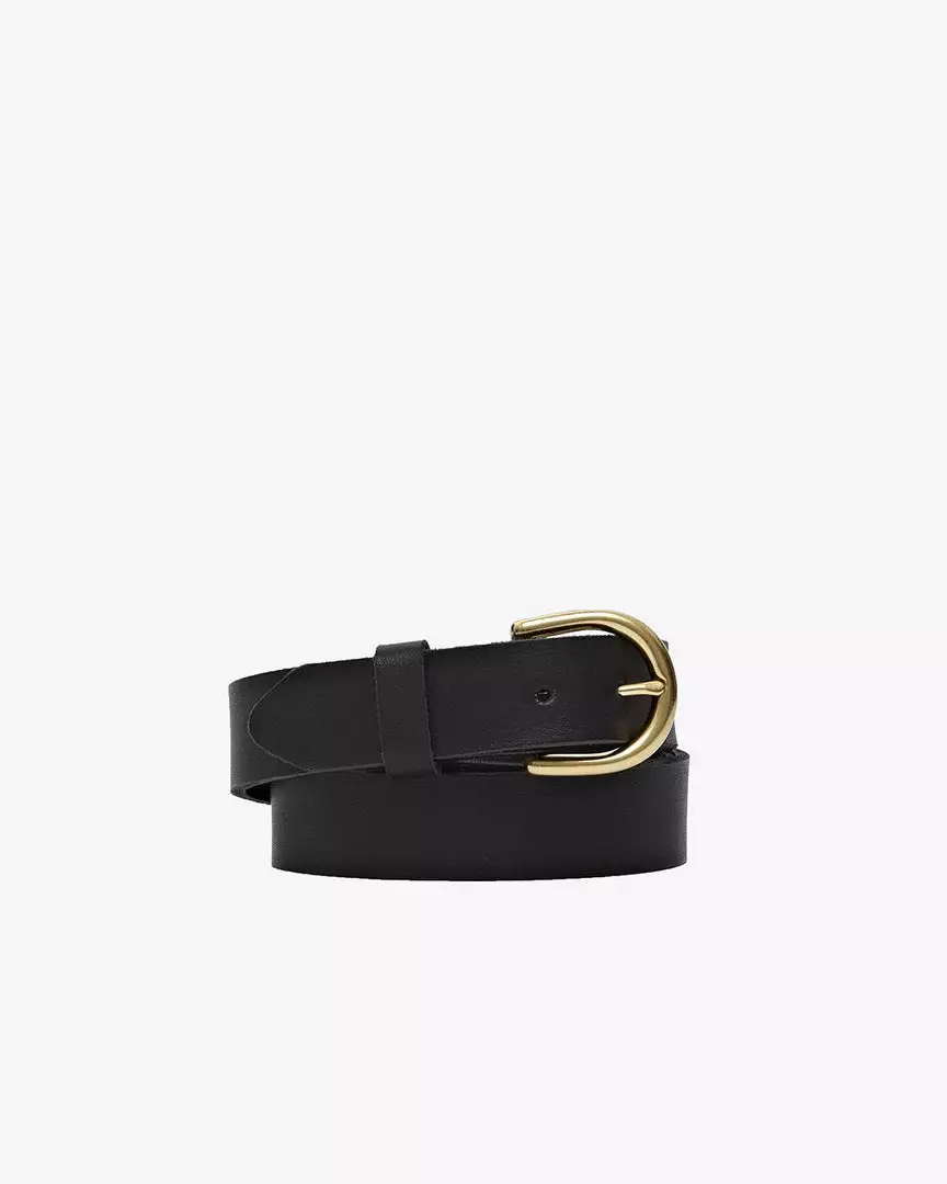 A solid brass buckle secures a classic belt from rich leather. Wear with your favorite pants or mix it up with a dress to complete your look from day to night. Find the perfect fit by measuring around your waistline where you normally wear your pants. Keep a finger between your body and the measuring tape to get an accurate fit.