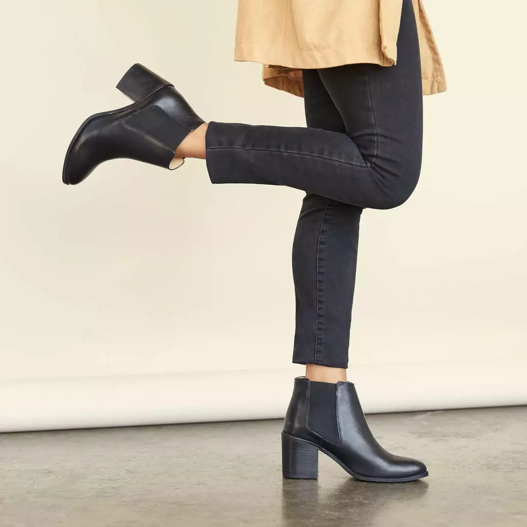 The timeless Chelsea Boot style, with a 3″ heel that is versatile enough to fit every dress code, and comfortable enough to wear around the clock. Handcrafted in an ethical factory in León, Mexico, the Heeled Chelsea Boot features waterproof leather and a rubber sole to help keep you dry as you move throughout your day.