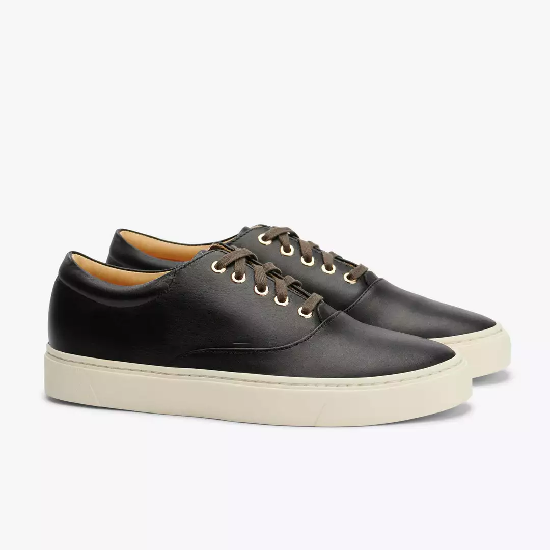 An elevated take on a classic sneaker style, the Elayna Leather Sneaker is handmade in León, Mexico and features a Vibram sole, rose gold eyelets, and waxed cotton laces.