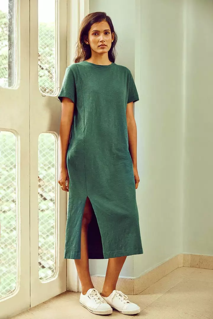 A midi so comfy, you’ll want to where it everywhere. This relaxed fit midi features a side front slit.