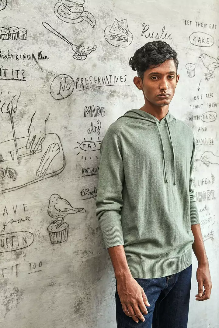 The Knit Pullover Hoodie is a cozy everyday piece with an elevated look. Made from organic cotton knit with a relaxed fit, drawstring hood, and ribbed trim details. This hoodie is knit from yarn into the exact shape of the finished product, eliminating fabric waste and making this a zero waste piece.