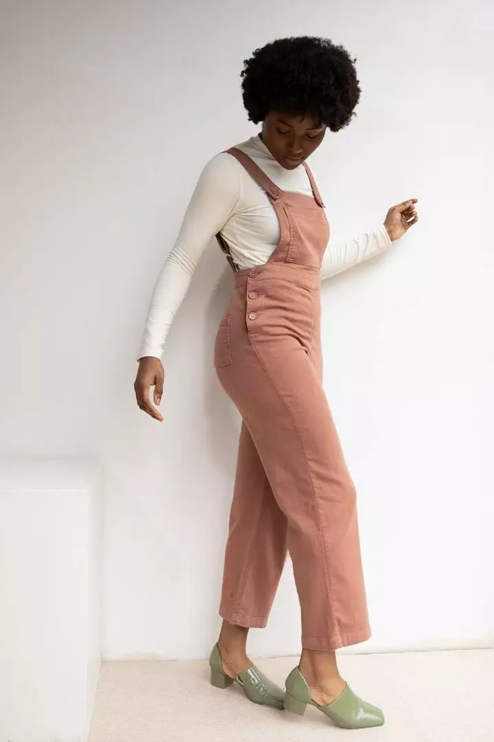The Ariel overalls are luxurious and comfortable in a stretchy soft fabric. They feature a fitted waist with a straight full length inseam, and adjustable straps that can be worn straight or crossed in the back.