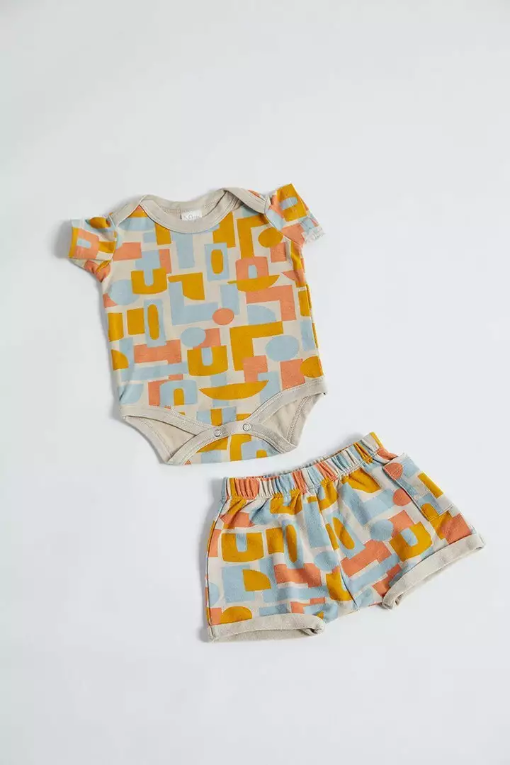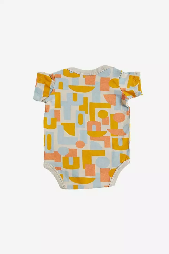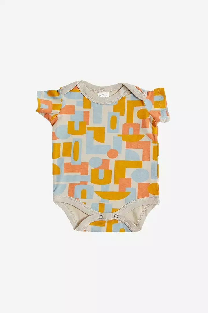 Super soft organic short sleeve onesie printed with a unique print. Envelope neckline and a two-snap closure for easy baby changing.