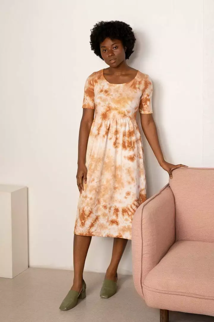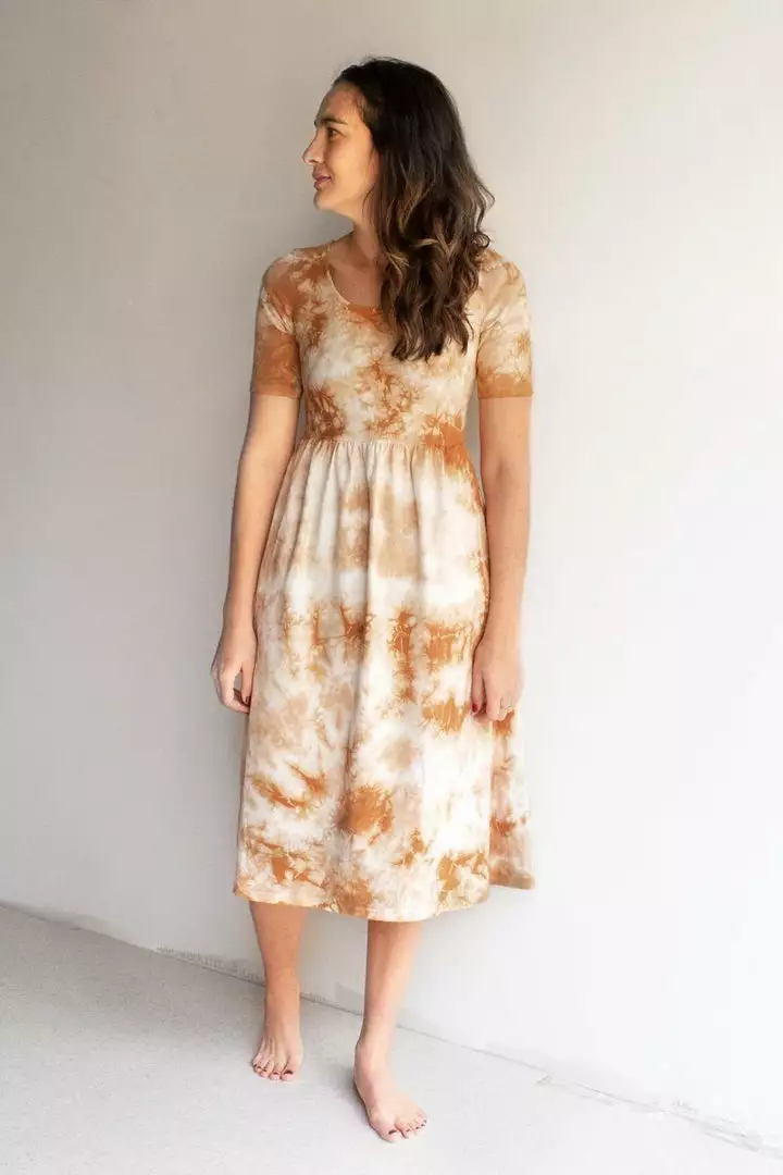 The Flora features a flattering elbow length sleeve, ballerina scoop neckline, perfect gathered waist, and a full, midi-length skirt. Made from soft and stretchy heavy-weight organic cotton spandex, that will keep you comfy and warm all year.