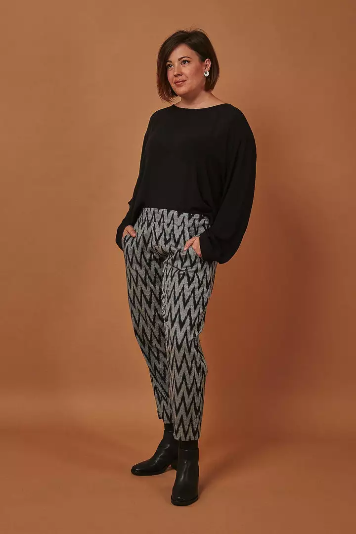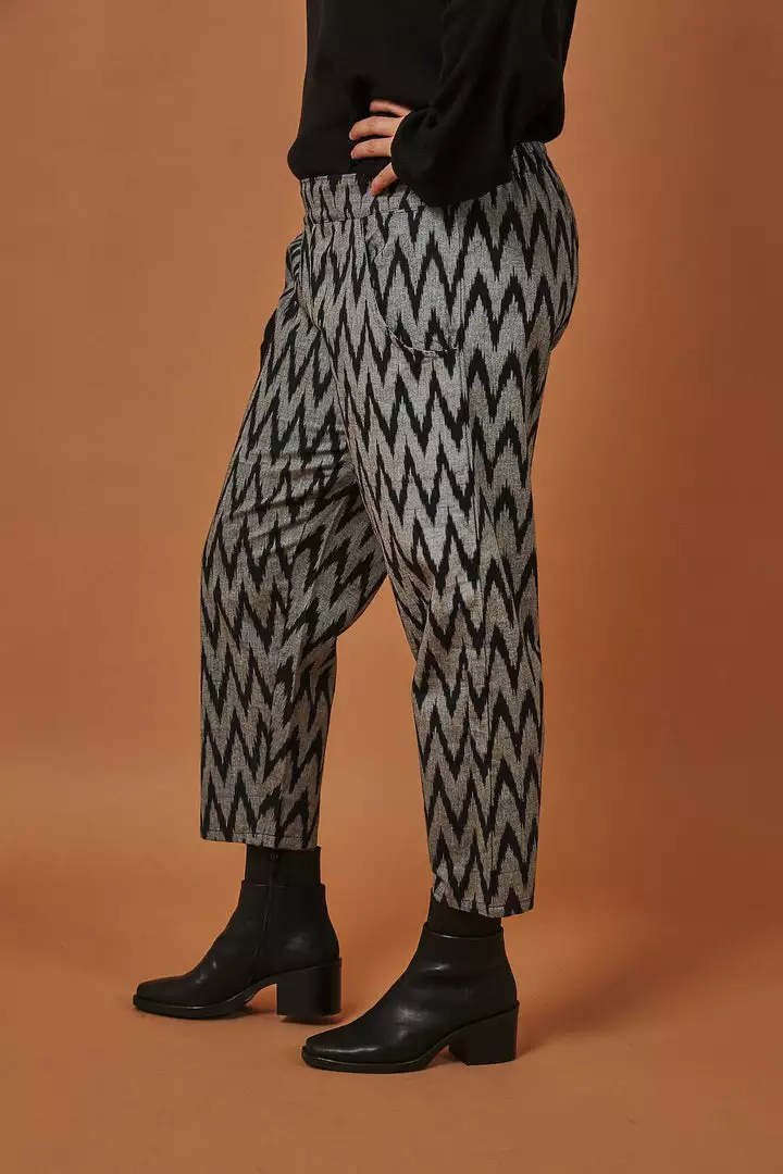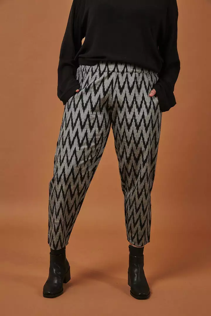Fun and funky, these Gray Chevron Crop Pants are an easy way to spruce up your wardrobe without going overboard. The bold zigzag print is sure to turn heads, while the neutral gray and black colors keep these pants appropriate for any occasion. Designed with inconspicuous pockets and lightweight fabric that slips on and off with ease, these pants define comfort and style. Your purchase helps provide a secure job with fair wages and a positive working environment to artisans in India and the United States.