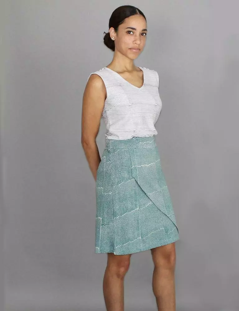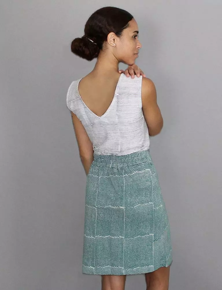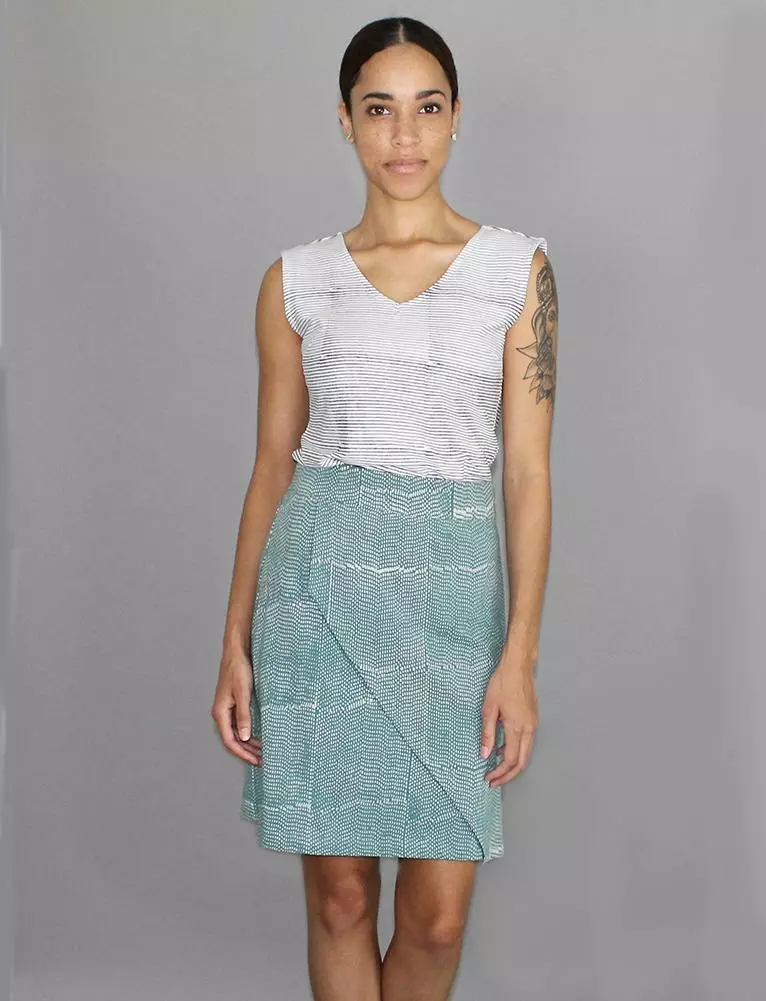 This skirt is made from eco-friendly, organic jersey cotton, and it features elastic in the back for a stretchy, flexible fit. Your purchase helps provide a secure job with fair wages and a positive working environment for artisans in India and the United States.