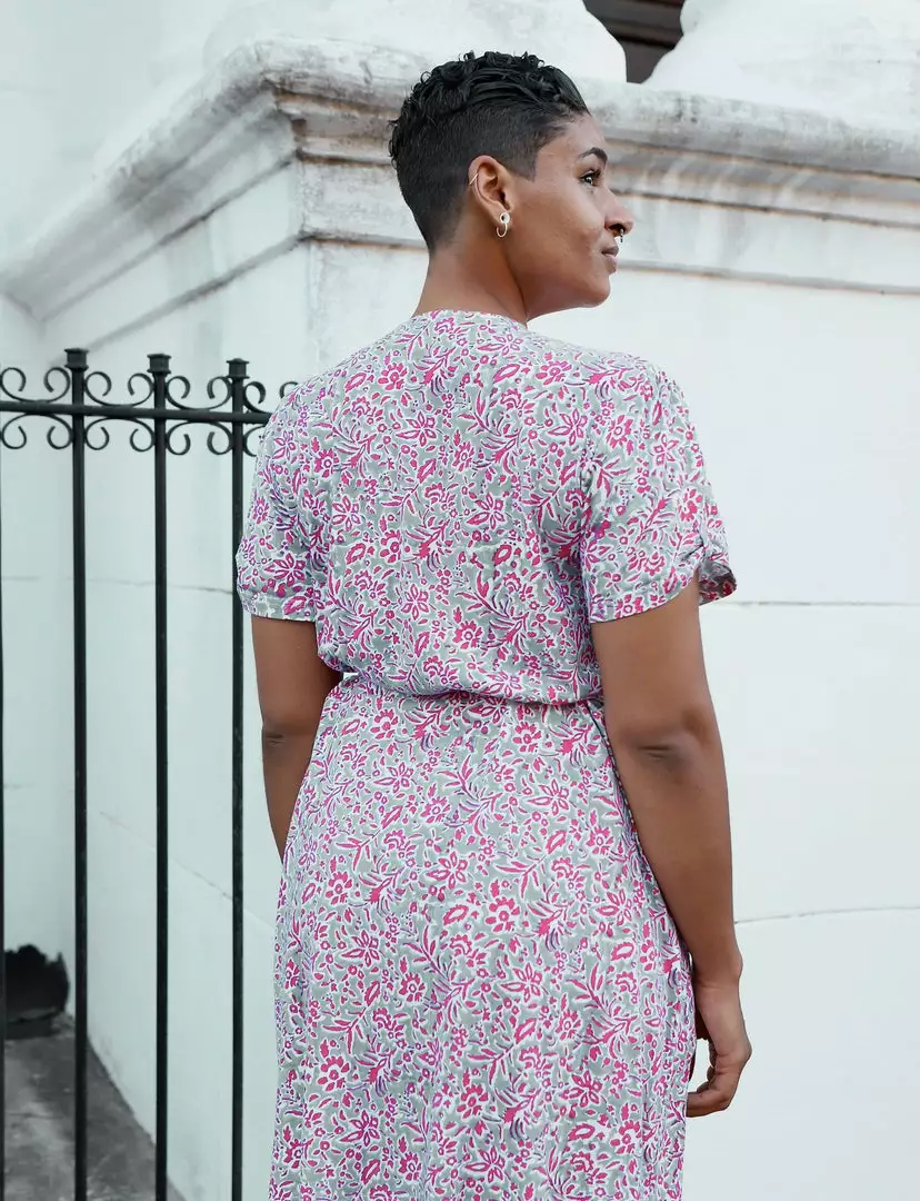 The ultra flattering Makai half wrap dress is hand block printed and made from the softest organic jersey with pockets. Makai’s origin combines ‘ma’ (toward) and ‘kai’ (sea). Due to the handmade nature of these products there may be a 5-10% shade variation from the picture of the garment to the actual product you receive.