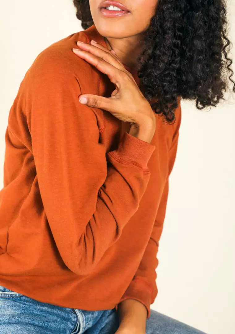 The Agnes Raglan Sweatshirt is a quintessential wardrobe essential with elevated details including raglan style sleeves, and ribbed crew neck, cuffs, and hemline. The cozy fleece fabric is the perfect weight for cooler days––made sustainably in Los Angeles from a blend of Organic Cotton and Tencel™. You’re basically wrapped in clouds when you don this classic style.