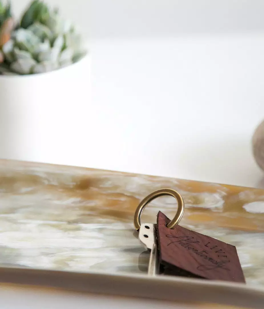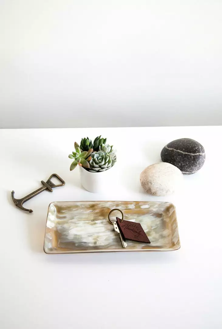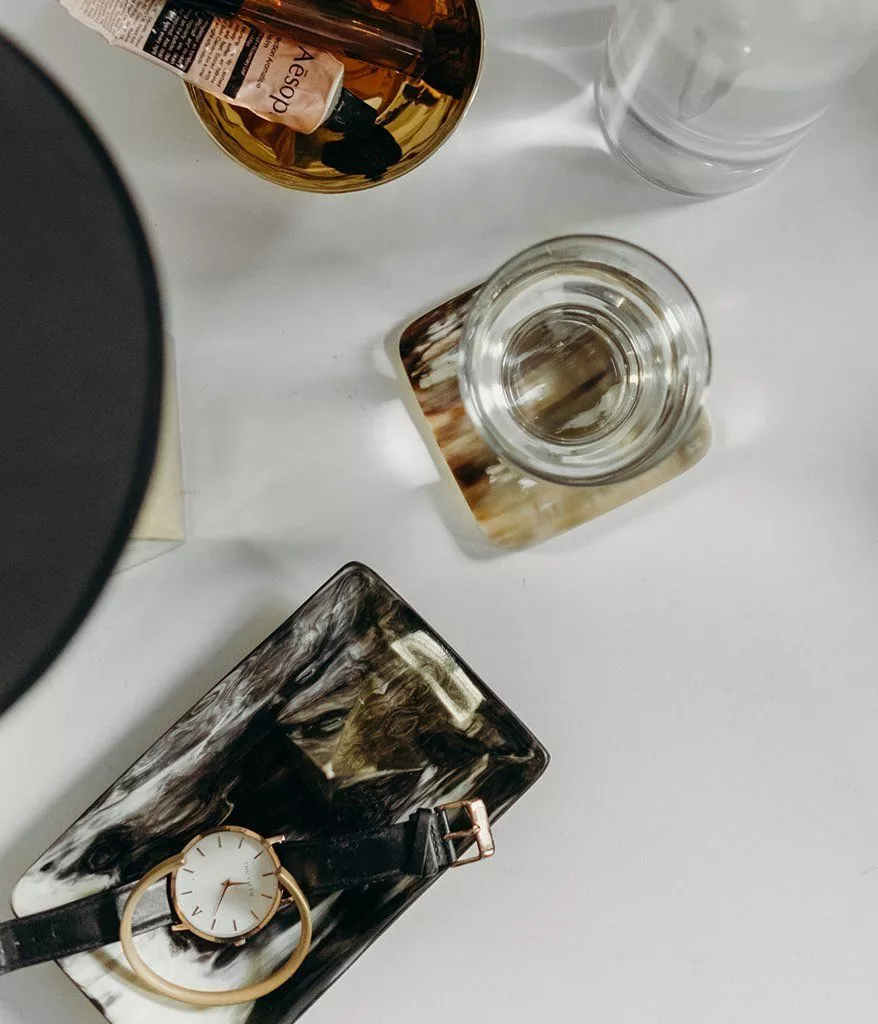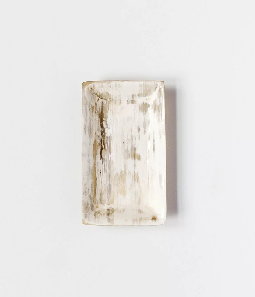 This delicate yet sturdyΒ tray is perfect as a desk organizer, a catchall for keys and loose coins, or to keep on the vanity to display perfume and jewelry. In addition to their impressive size, Ankole horns are also known for their beautiful variation of colorsβranging from light to dark, with exotic stripes of ivory, black, and brown.