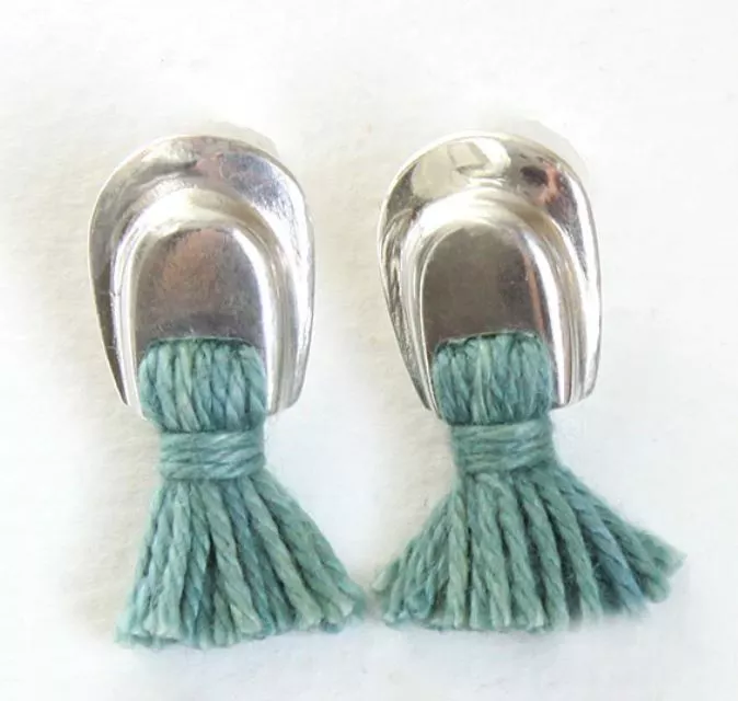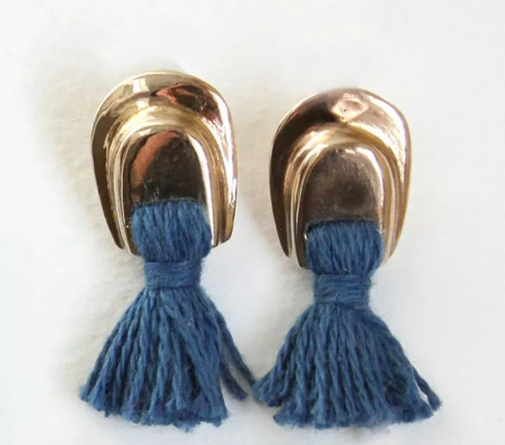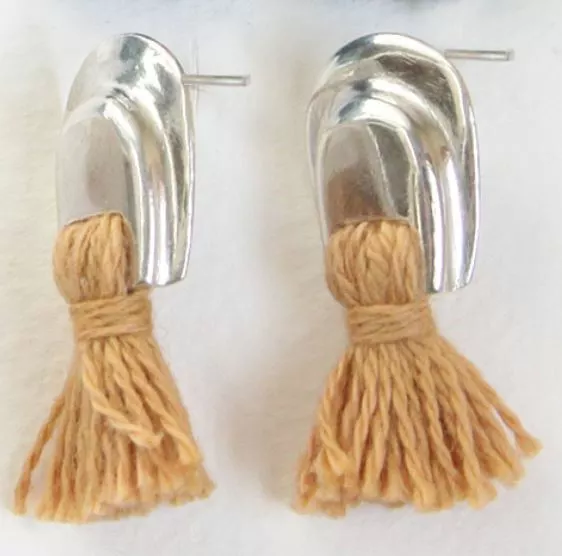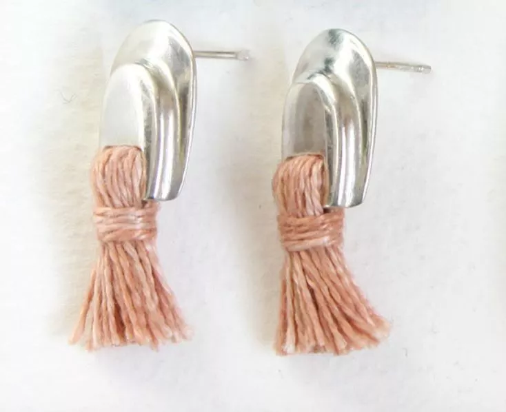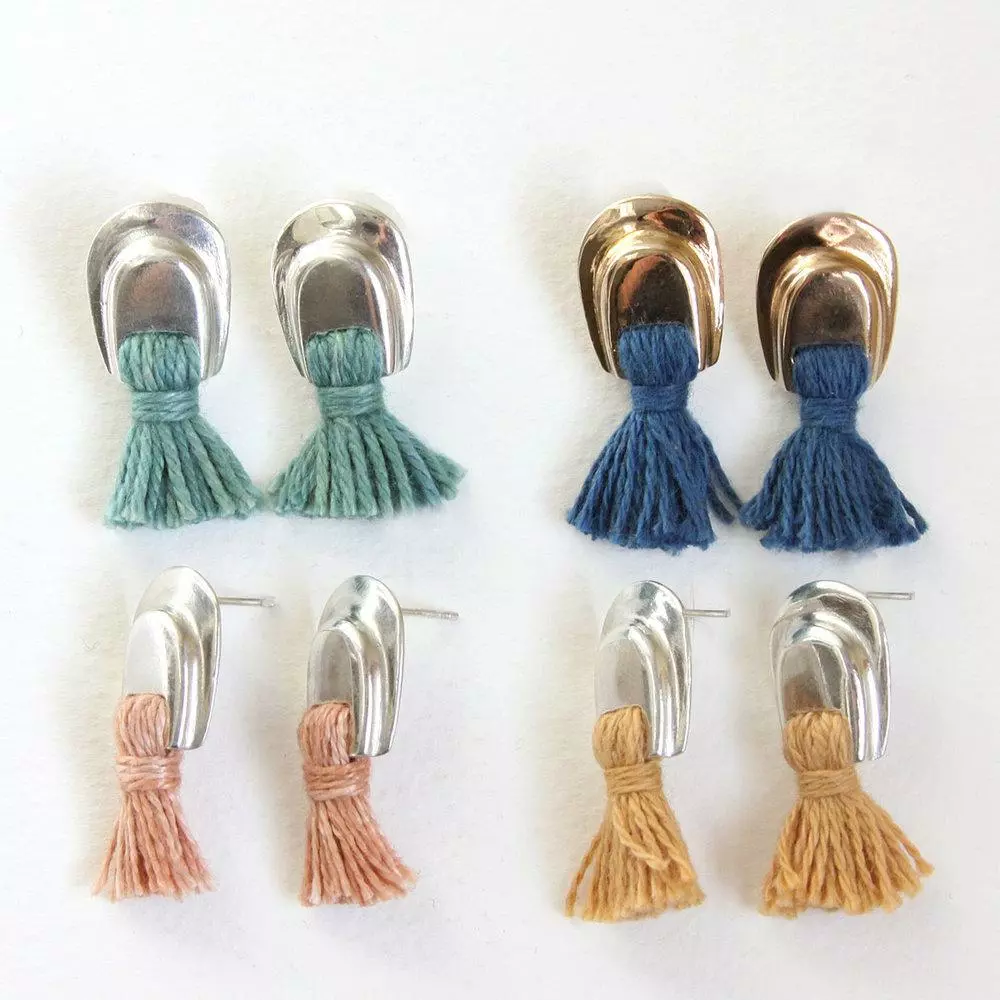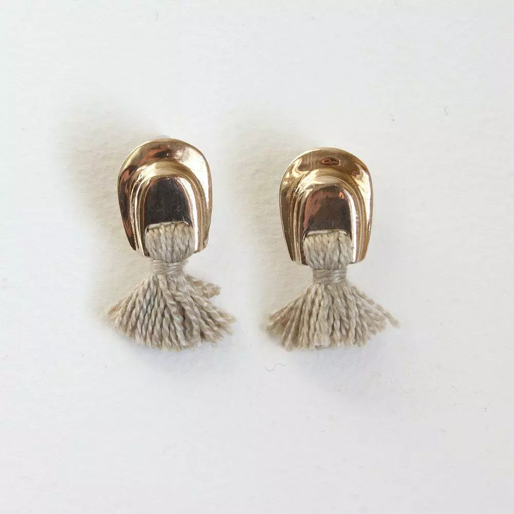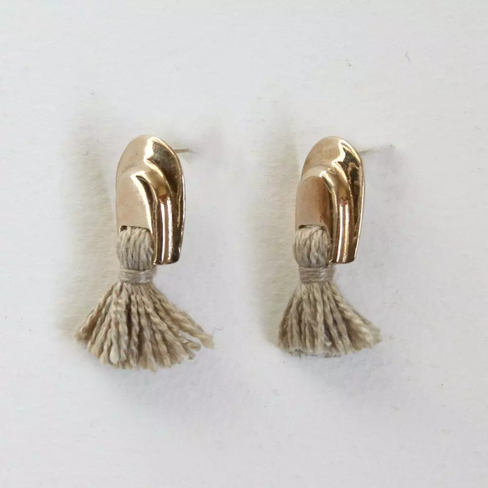 These small arc-shaped earrings have been cast in sterling silver or brass and have a petite tassel.