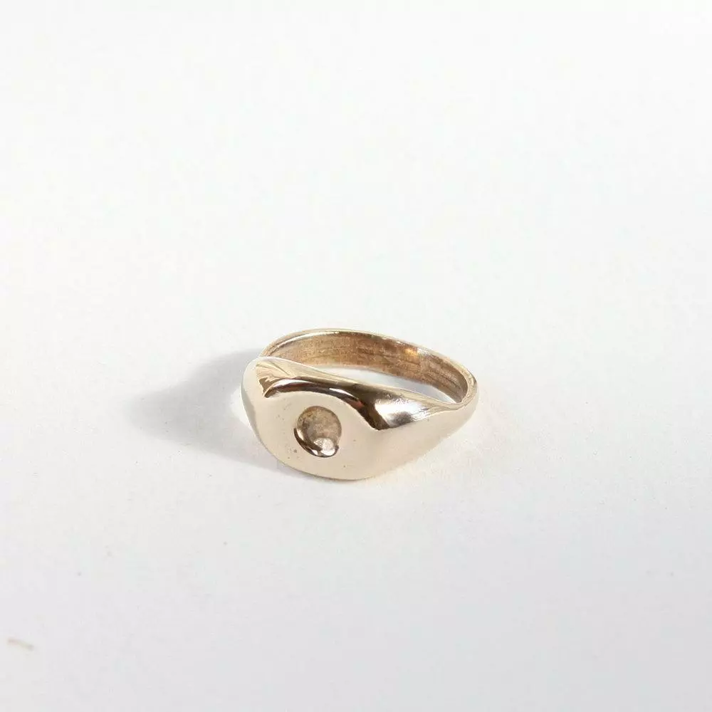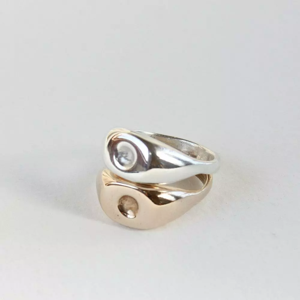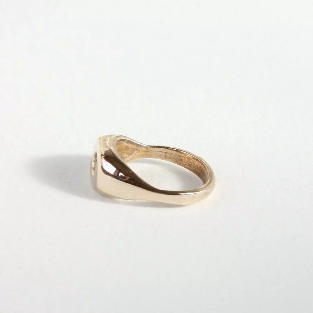 The Dimple Signet is available in cast bronze or sterling silver and is polished to a high shine.