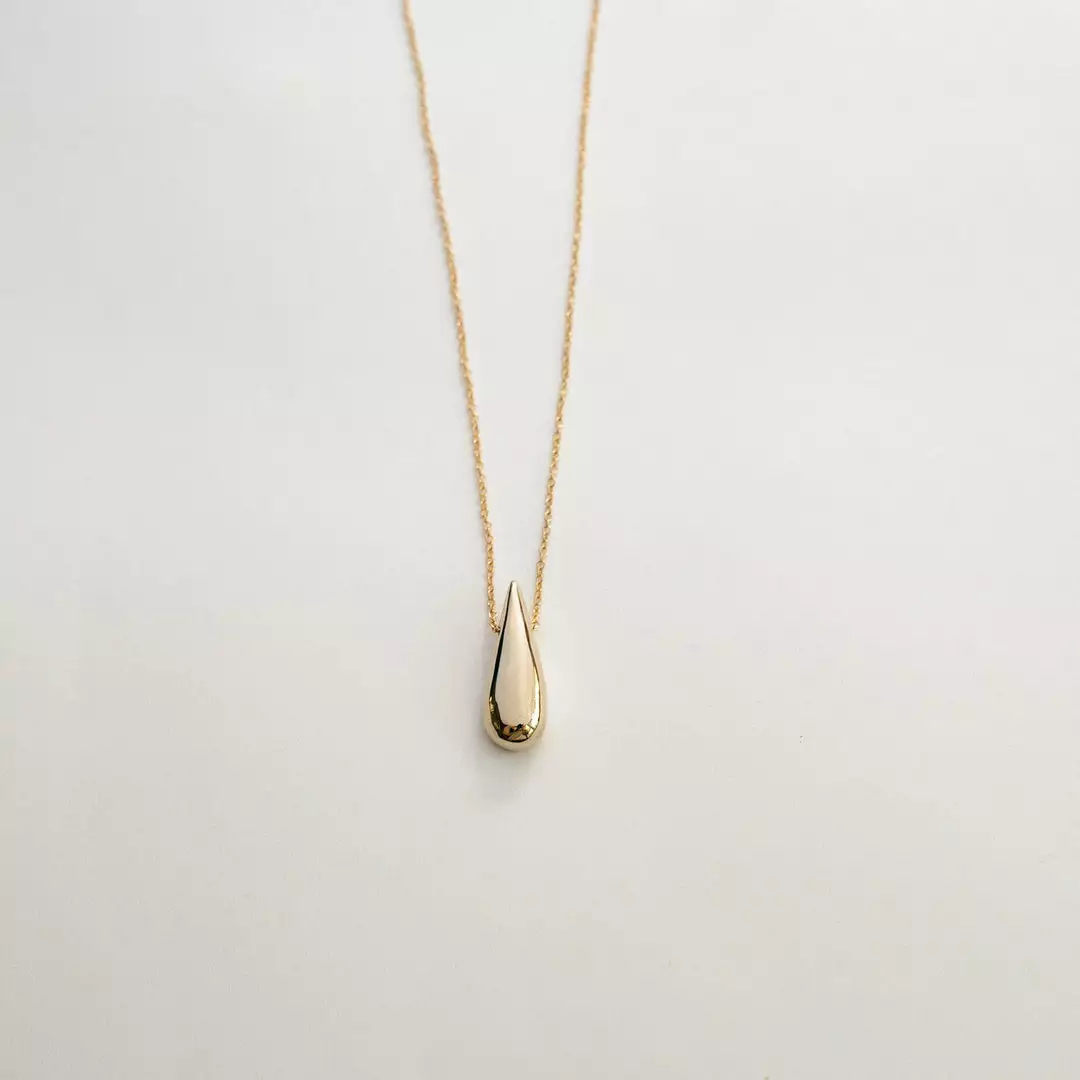 This smooth, weighty pendant was inspired by a splash from a heron diving into the water. Made in small, intentional batches.