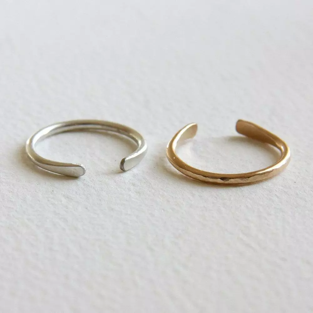 The Nimbus Ring is available in hand shaped and hammered sterling silver or 14K gold fill. Made in small intentional batches.