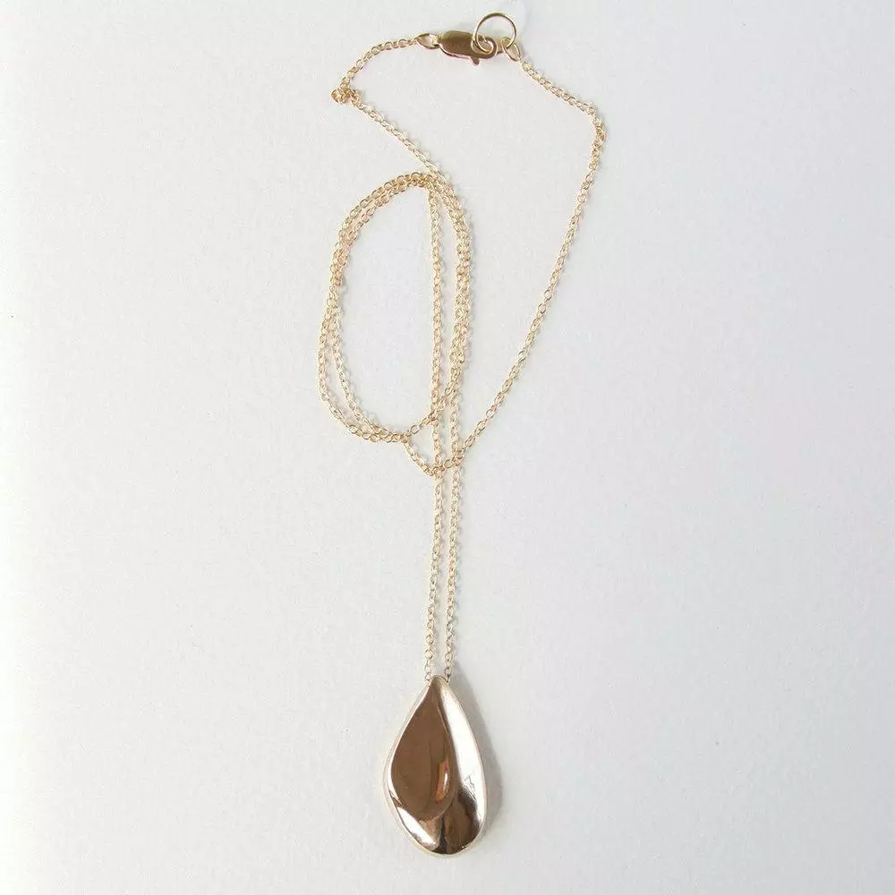 The pendant on the Stone Necklace is inspired by smooth river stones found in the Pacific Northwest and their convex/concave properties. There is an organic feel to this handmade necklace. Made in small intentional batches.