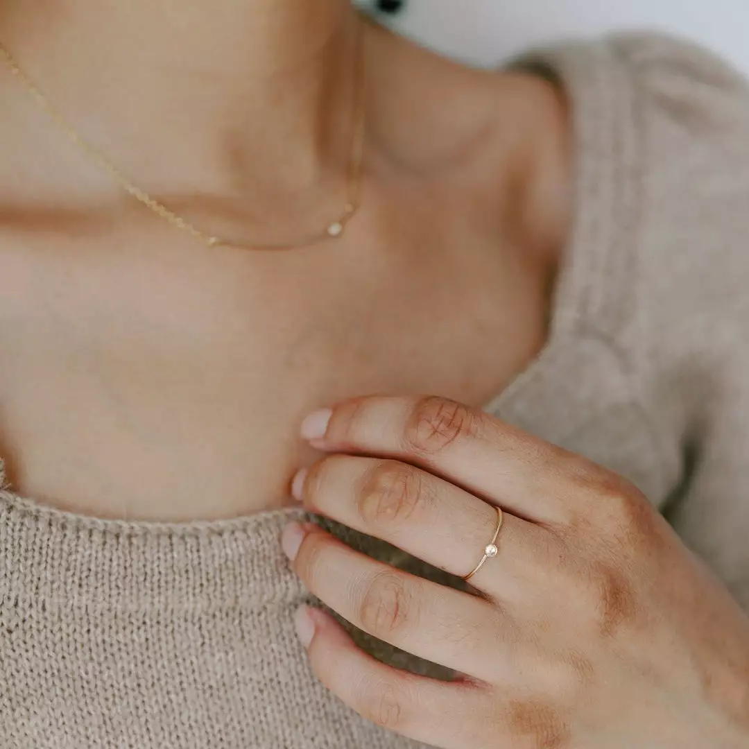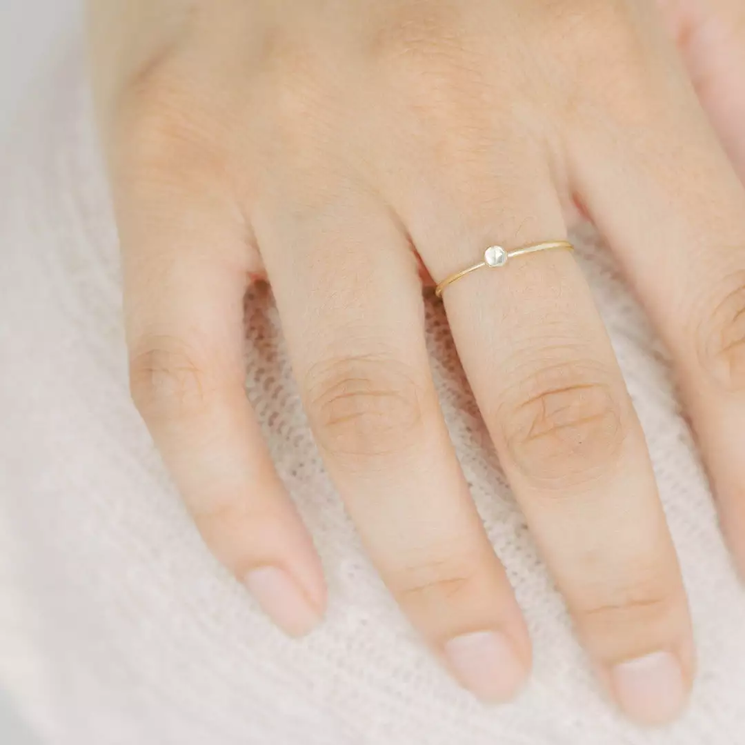 This dainty stackable gold ring with white topaz can be worn on its own or stacked with any of your favorite rings. Mix and match with the Be Light Recycled Gold Stacking Ring or the Deep Pearl Recycled Gold Ring.