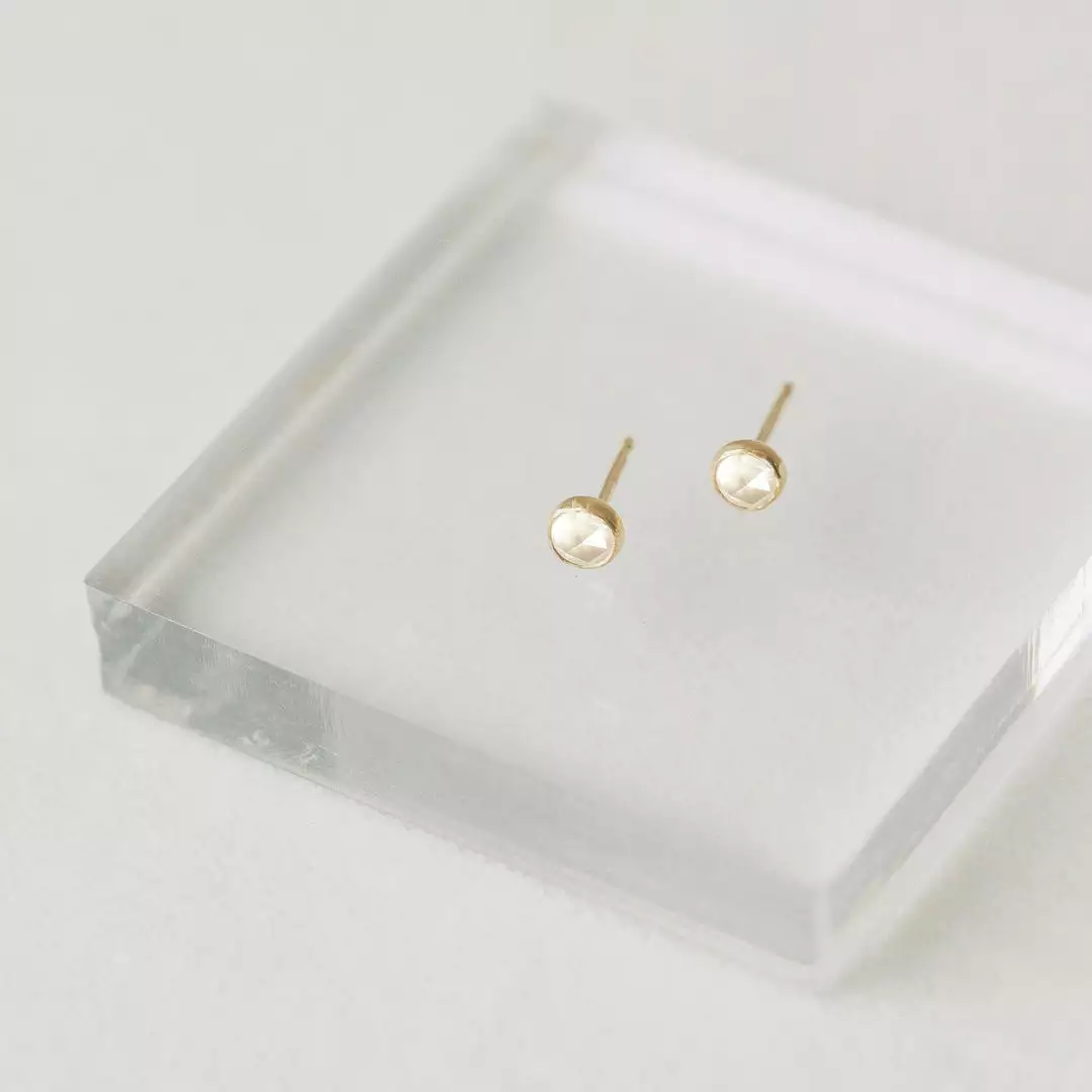 These golden white topaz studs are light and dainty. Wear them on their own or pair with the Deep Pearl Recycled Gold Studs.