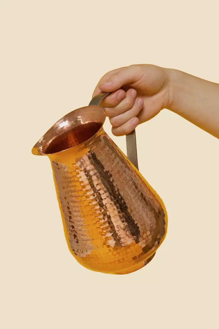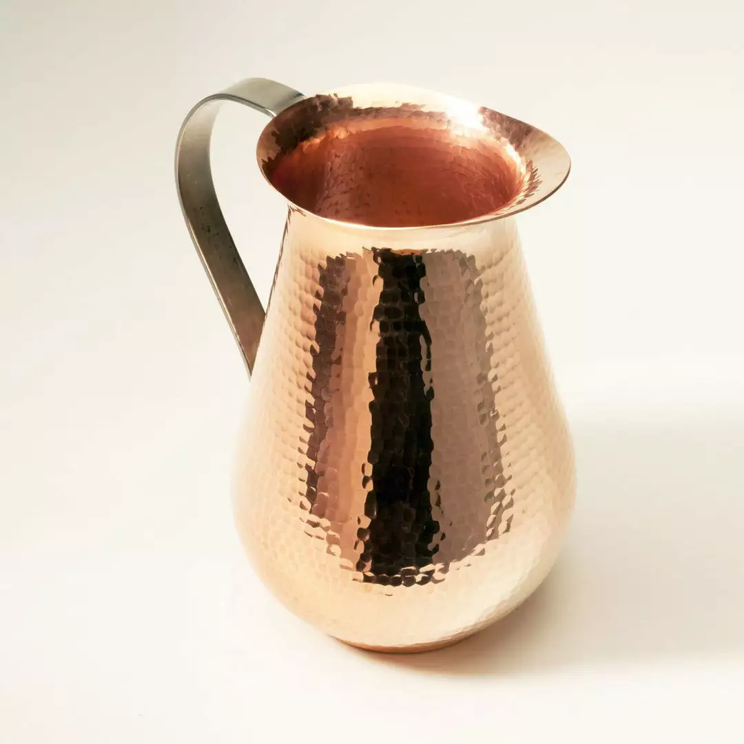 The hammered copper Bisotun Water Pitcher brings the ancient tradition of copper water vessels to your table. Traditionally prized for copper’s unique properties of purification, healing and keeping water cool, the pitcher adds elegance and health to the planet’s most precious resource.