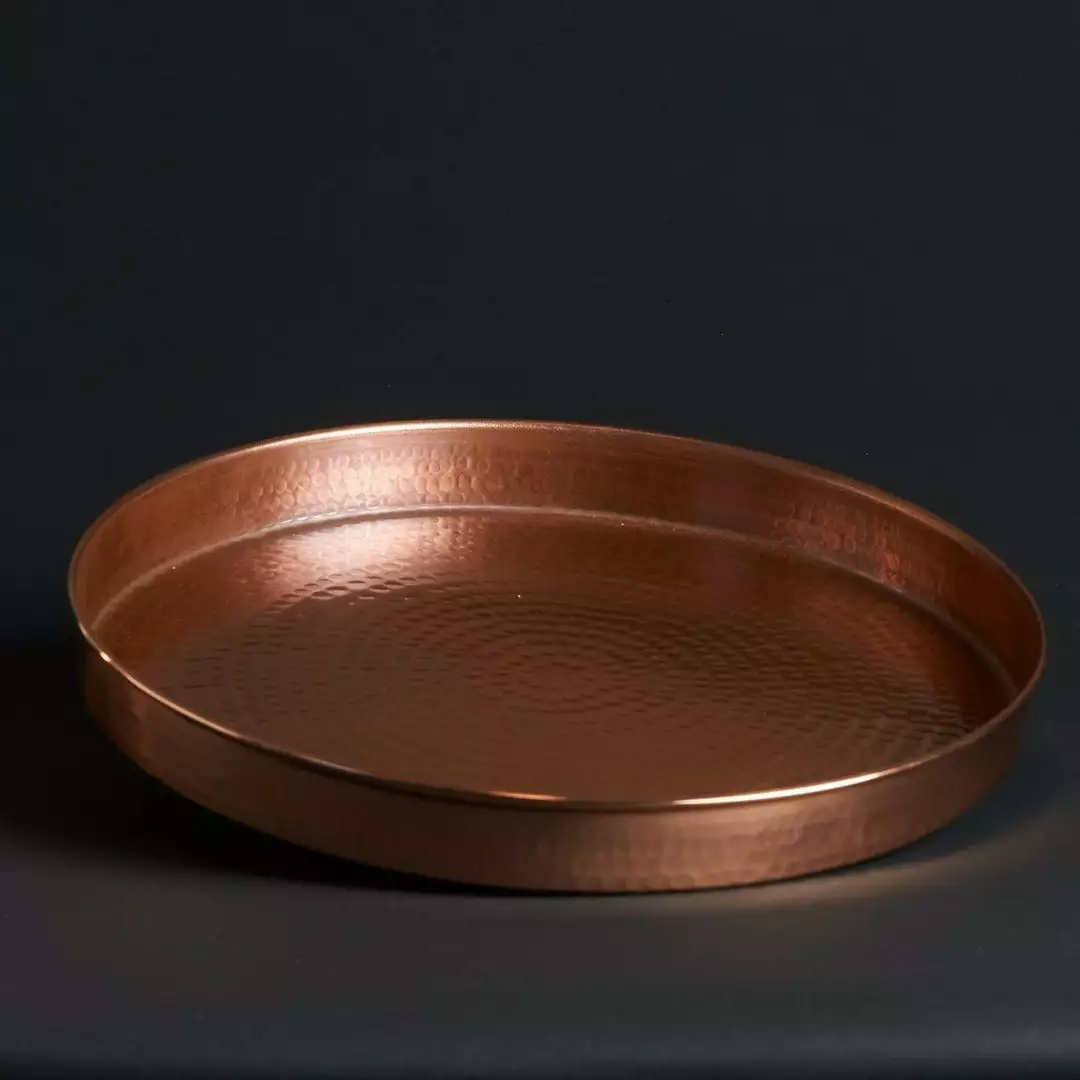 Oysters, Drinks, TV dinners. Polished and patina, all the warmth and shine of copper stand out in this functional piece. Crafted with beauty and durability, this tray will provide years of elegant service.