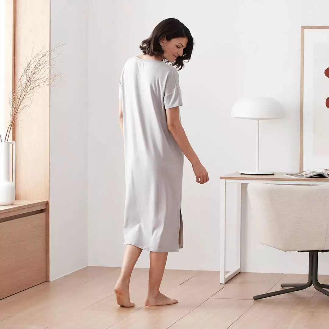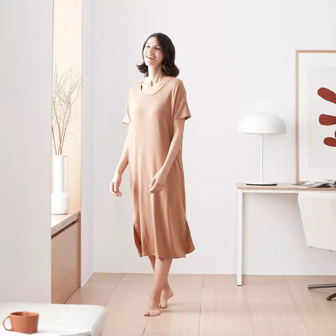 The Midi T-Shirt Dress features a chic, fitted silhouette with an on-trend midi length, making it an ideal piece to wear around the house, or to even run an errand or two. And with super soft Eucalyptus material, you’re going to want to live in this dress. Layer with a cute jacket or sweater to wear this out and about for coffee or other quick errands.