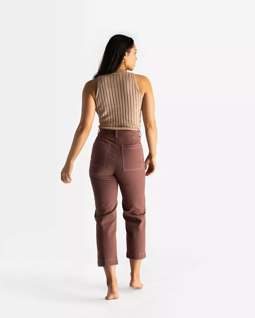 The organic cotton Clay Cargo Pants have a high coziness factor with their brushed fabric, ultra high waist and hugging hip fit. The fabric is a sturdy, medium weight that is up for life’s daily activities while being super soft and easy to wear. The white contrast stitches add an extra detailed and elevated touch.