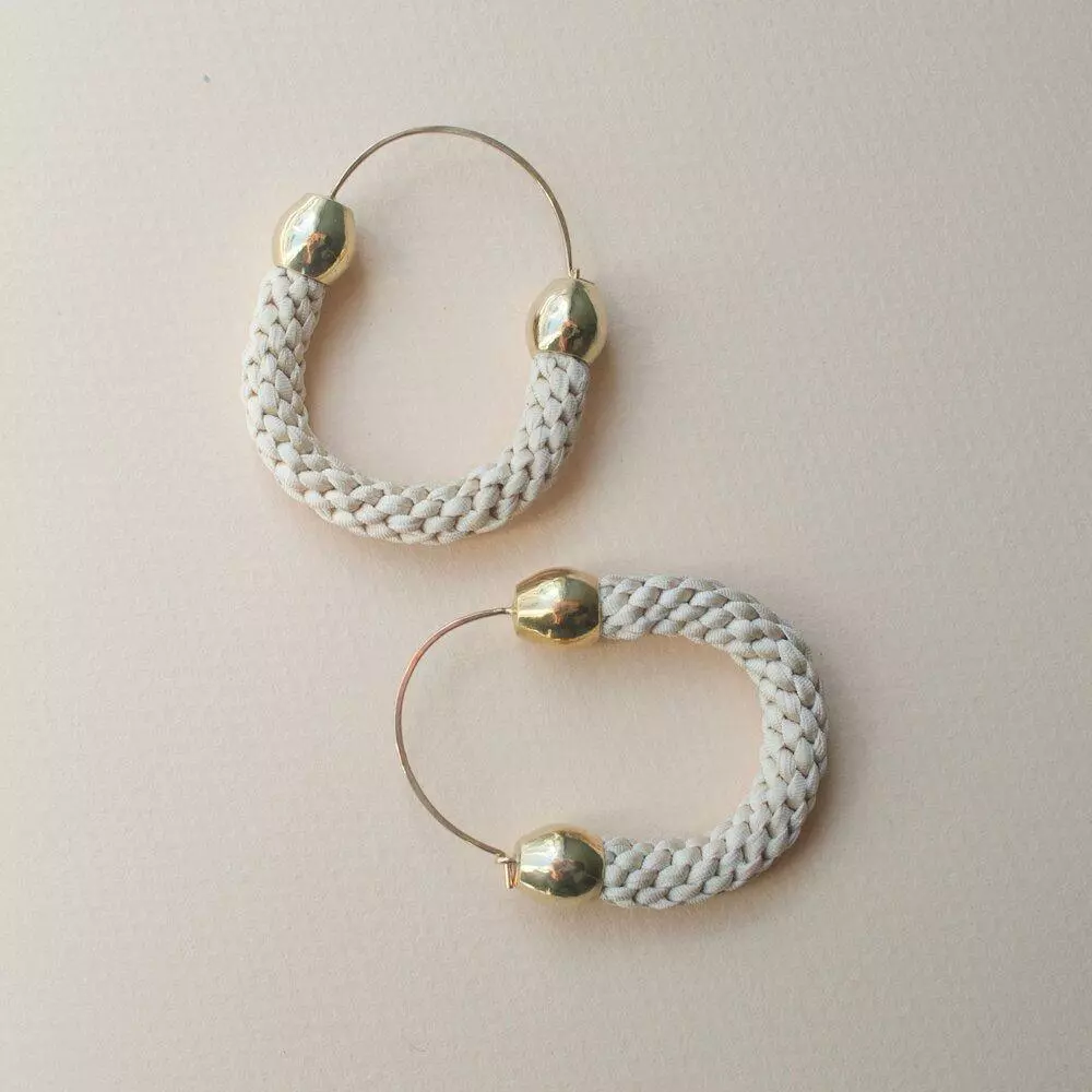 The Kumi Hoop Earrings are hand made using bronze or sterling silver pods, and botanically dyed and braided silk. All colors (with the exception of Ebony) are achieved via botanical dyes. Due to the hand-dyed nature of this piece, slight variations in color are to be expected.