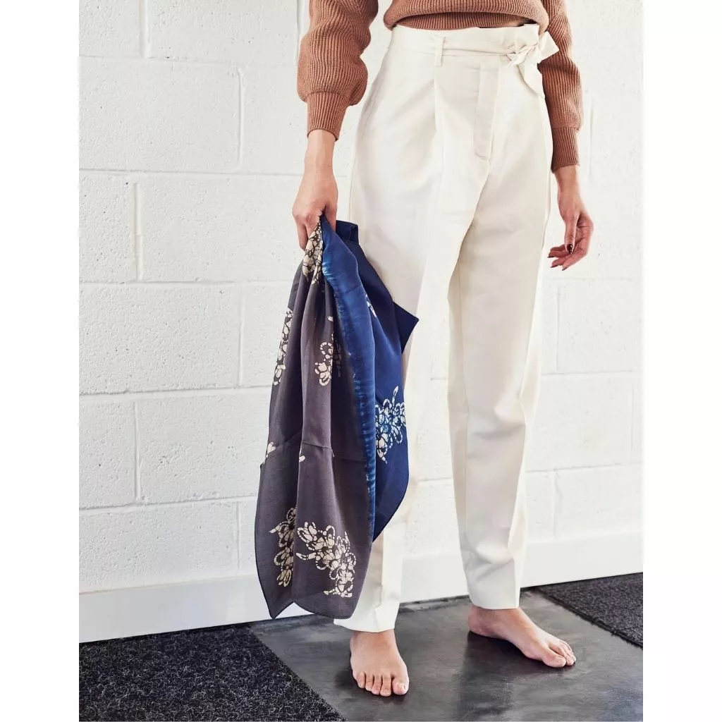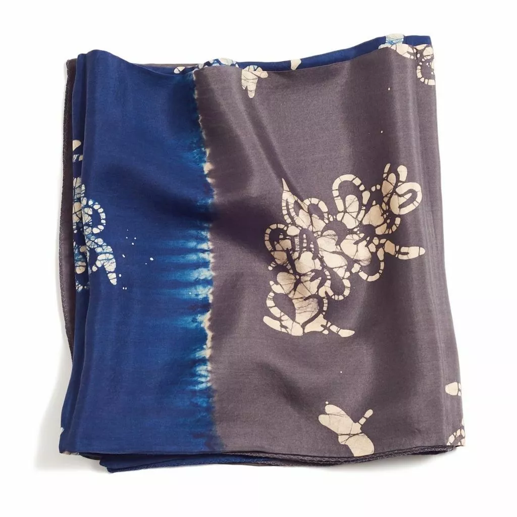 The Oraa Indigo is a classic silk scarf that can be worn as a scarf or a wrap. It is made by master shibori artisans in India. This scarf has been made using wooden blocks and a hand wax printing process which creates a beautiful one of a kind pattern. Classic in design, this scarf is a truly sustainable luxury piece that also supports artisan communities.