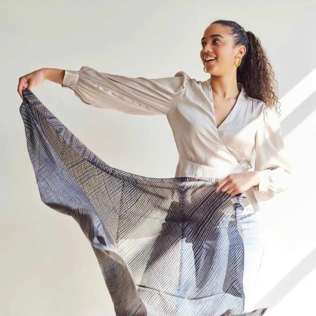 The Layaa Indigo Silk Scarf is an effortless and luxurious everyday accessory. Layaa means harmony of tunes in Hindi, and the timeless style will add an elevated touch any outfit. Wear it as a wrap or around your neck for an extra layer, or style it in your hair or on your handbag for a sophisticated touch. The design is created by tightly winding the fabric and hand dyeing with non-toxic, organic dyes. The base color is created with dyes from Acacia Tree. All scarves are handcrafted in small batches to ensure high quality and less waste.