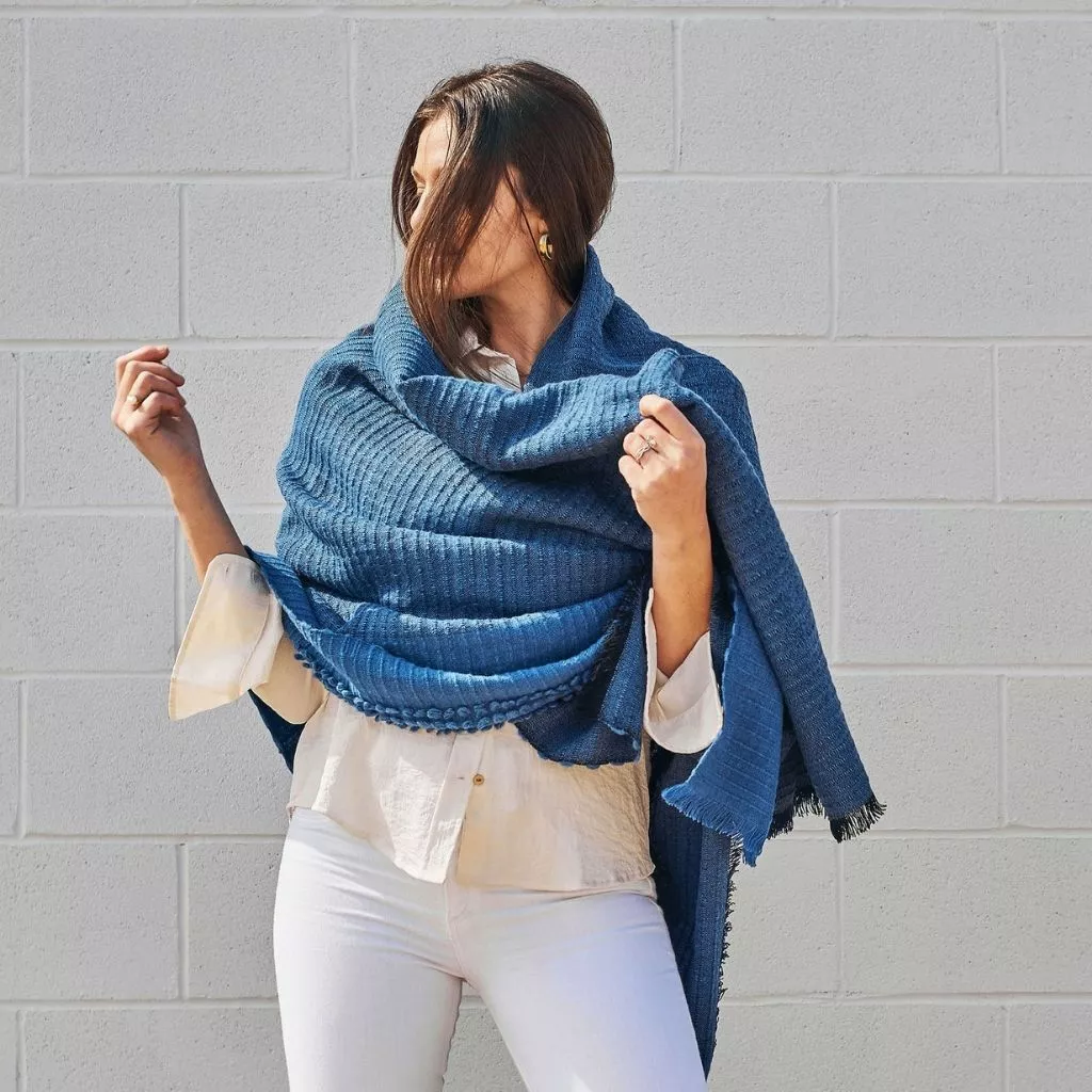 The plush Macaroon Midnight Throw is a masterfully handwoven luxurious piece. This one of a kind textile is an artistic statement that will elevate any living space. Intricately hand woven with neat fringe creates a unique variety of textures. This piece combines heritage crafts with high quality craftsmanship. It’s hand-dyed with certified earth friendly Swiss dyes, free of toxic chemicals.
