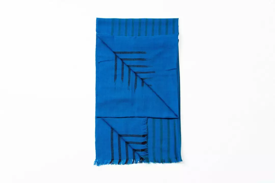 The Peacock Melos scarf is a modern take on Ikat weaving techniques. The play of colors creates subtle patterns that stand out or blend in depending on how the scarf is folded and worn. Each piece comes with an individual envelope shaped pouch made with canvas cotton and a natural wood buttoned closure.